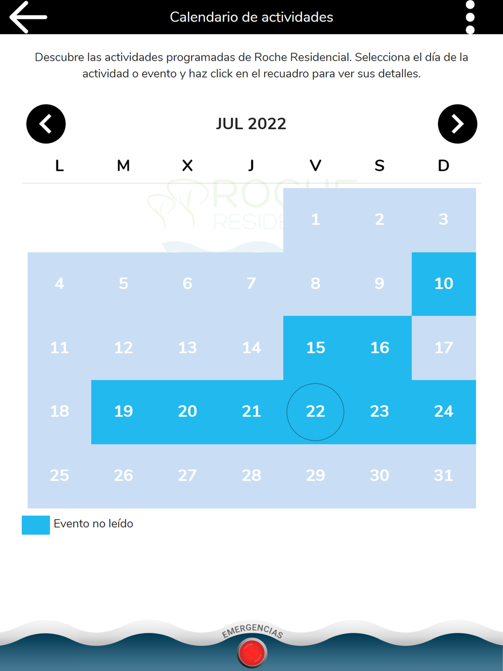 • ACTIVIDADES: Consultar el calendario de actividades que se ofrecen en la urbanización con notificación de aviso de nuevas actividades.
