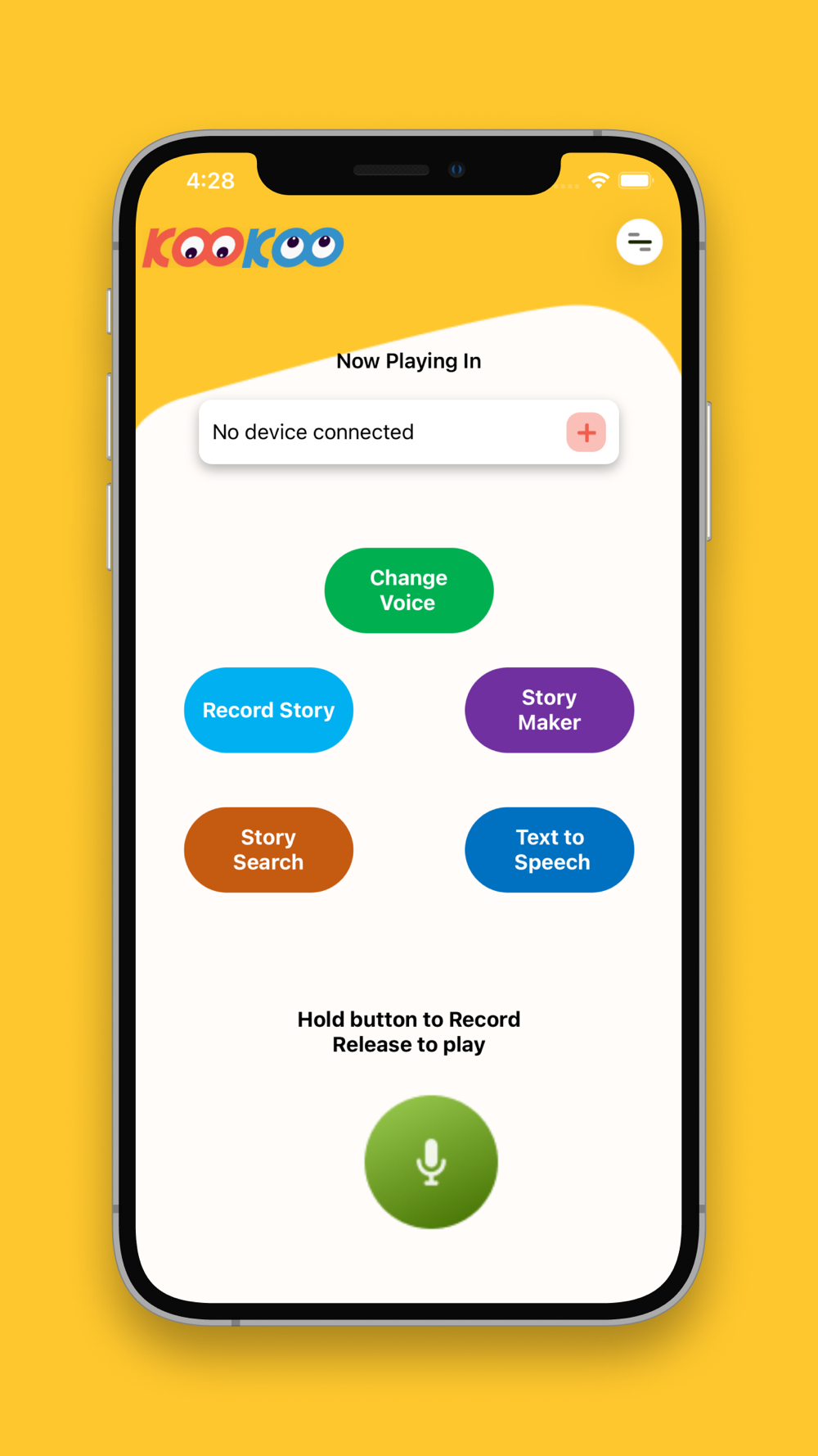• With the KooKoo app you can pre-record a story and then let the KooKoo doll play it in its unique voice.