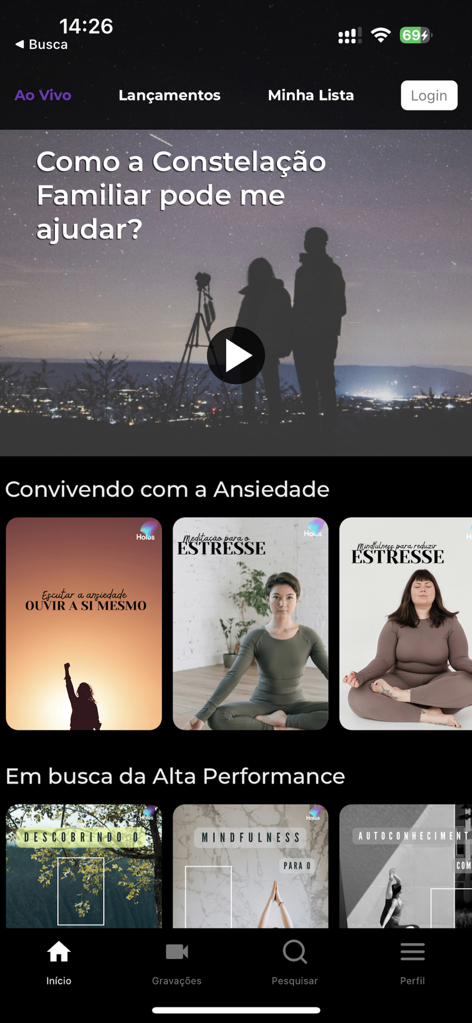Seja bem vindo à Holos Live - Uma plataforma focada em bem estar.