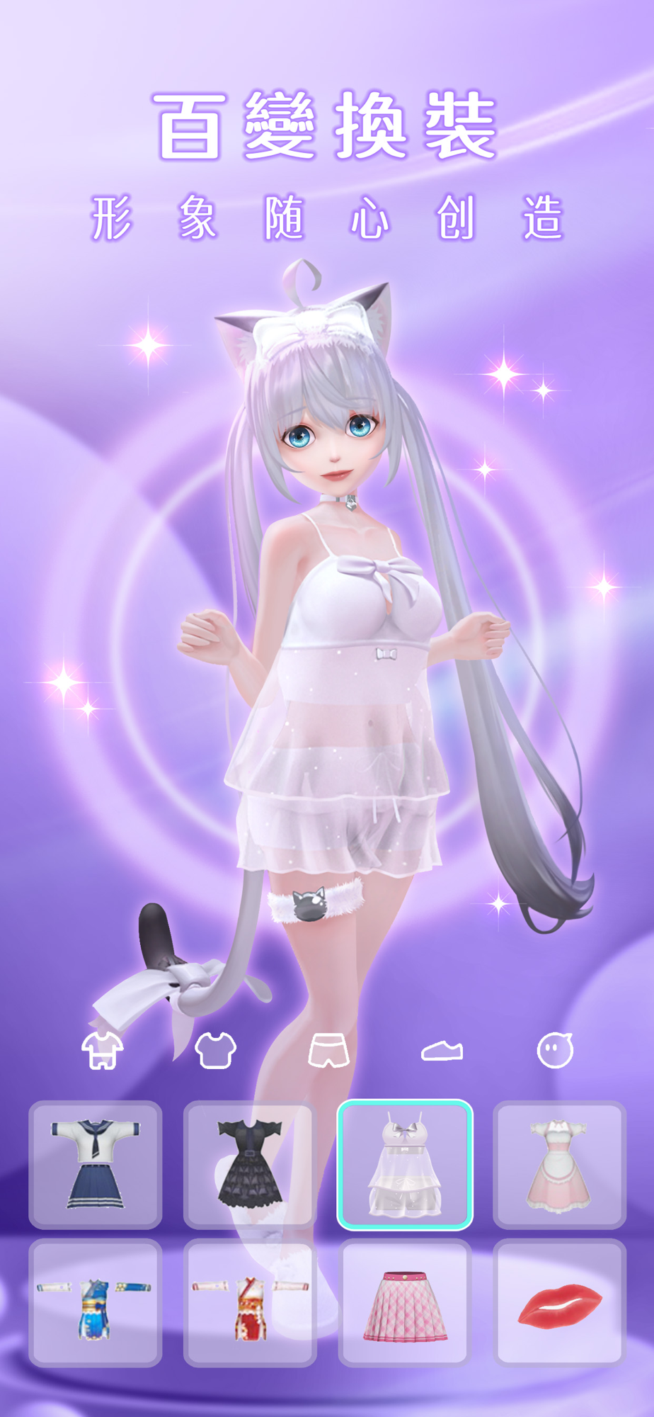 创造你的专属3D虛擬形象,打造完美脸蛋&完美身材,搭配最潮流的服饰发型,成为社区最闪闪发亮的大明星