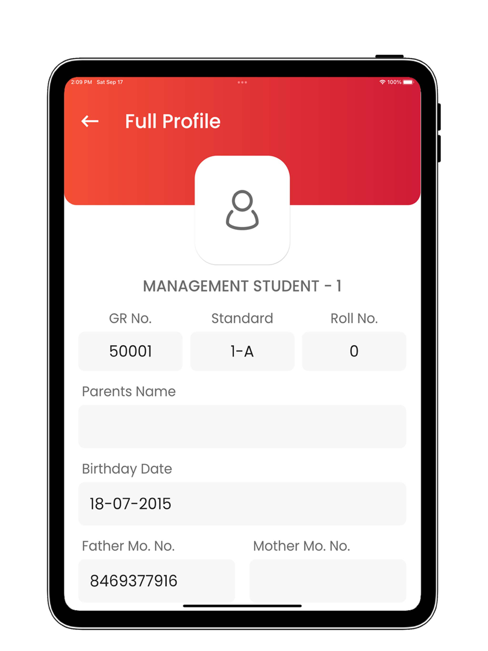 The Parent Dashboard reflects the respective Student’s Attendance detail, Student’s Performance detail based on different exams, Fee Description, Holidays, Events, the Time Table, School Diary, the Scheduled Syllabus of the whole session & the Upcoming Birthdays of all Staff & Students. Switch to profiles of different students to view their records from a same Parent Dashboard.
