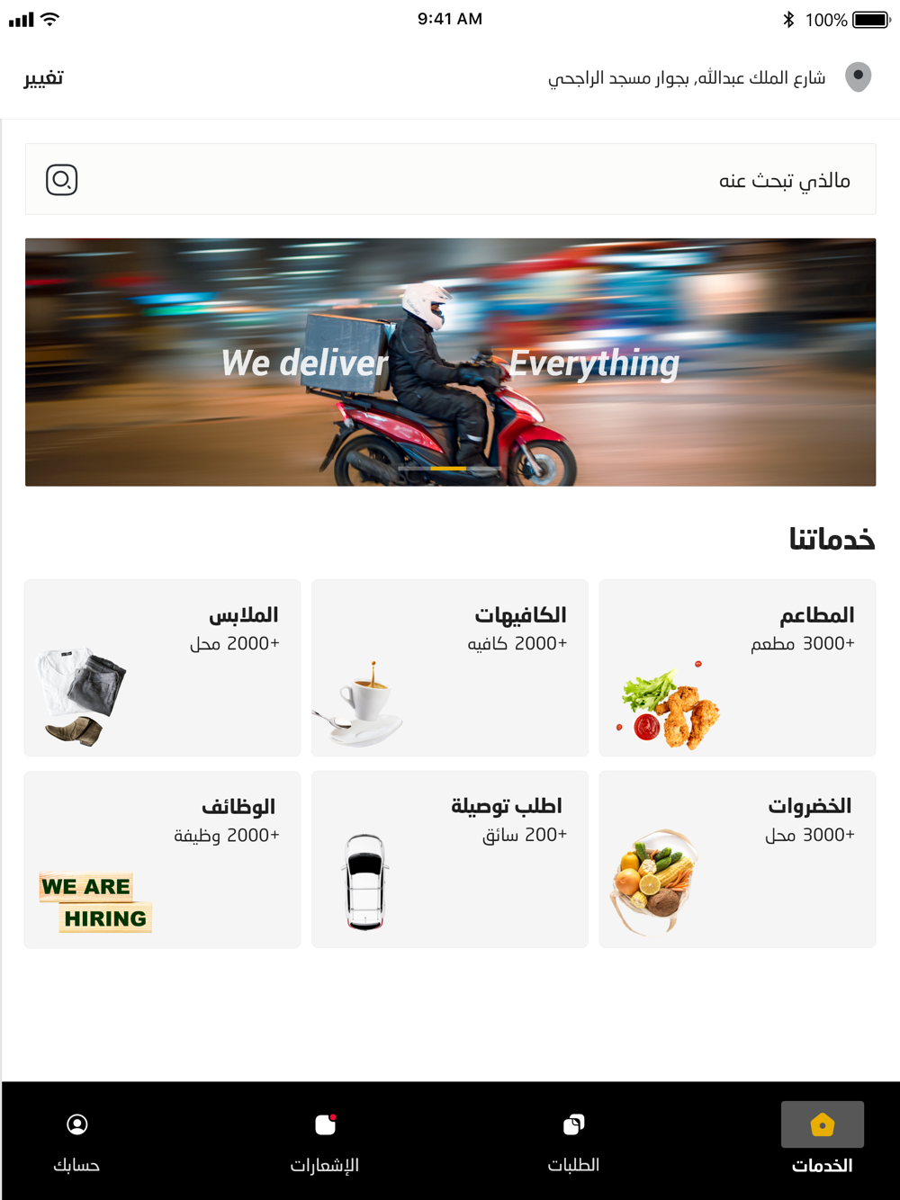 يساعد المستخدمين في عمل طلبات ويتم توصيل الطلبات من المتاجر إلى المستخدمين