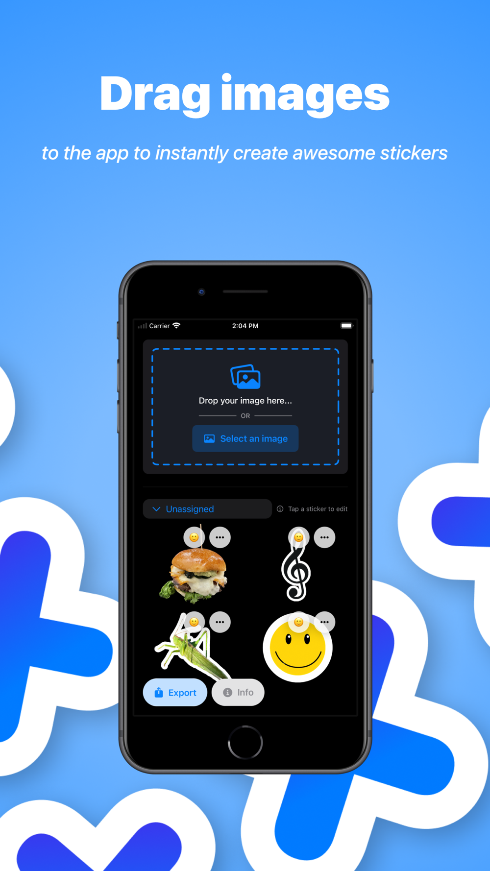 Use new iOS features to cut objects from your images and drop them in the app to create beautiful sticker packs. Alternatively, select one of your images to be turned into a sticker.