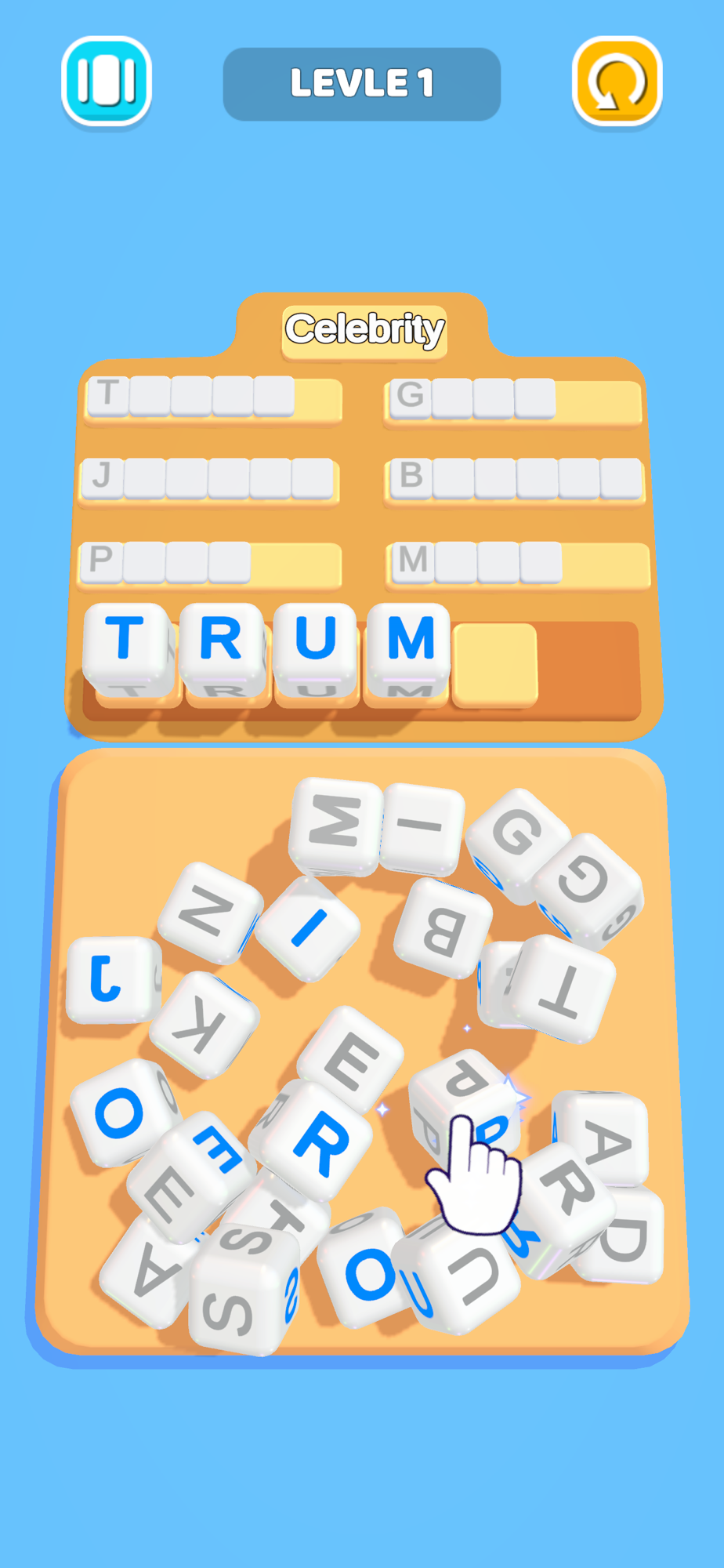 Here is another bunch of messy letter squares, and there are suitable letter squares that can be formed with the initial letters. Click and drag the letter squares you want to form the words you think are right.
