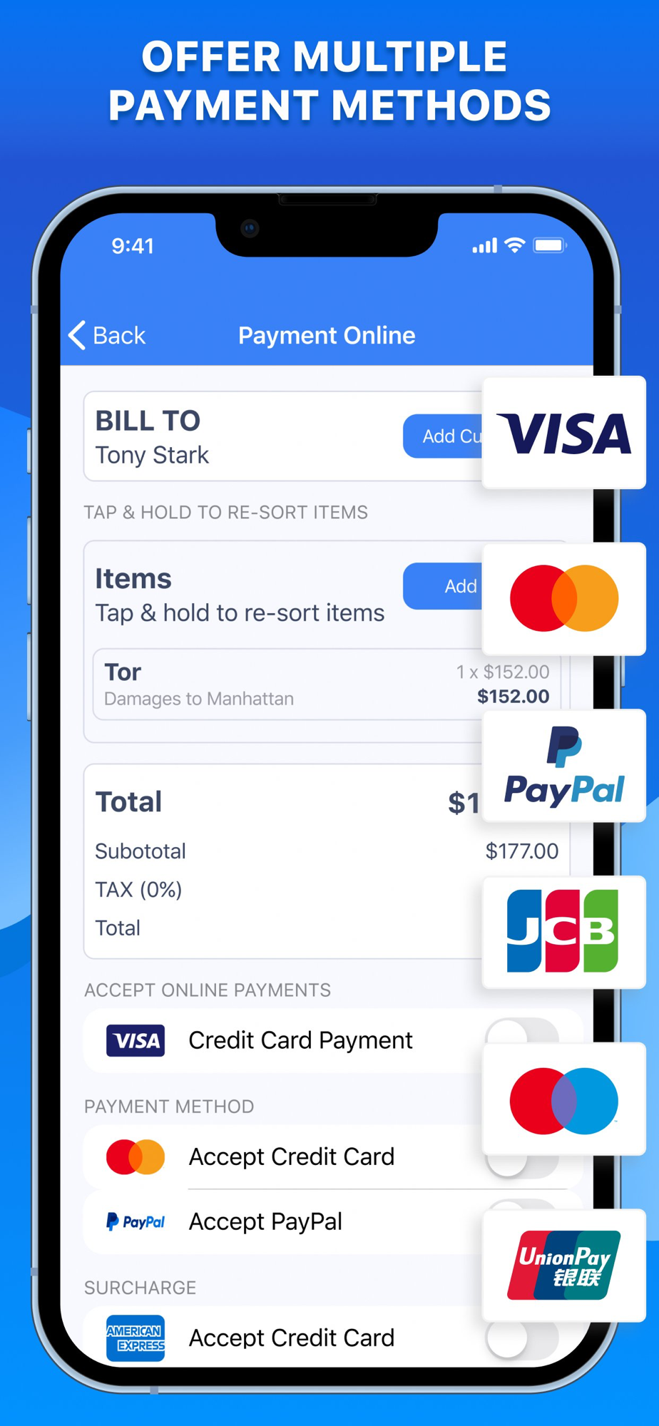 multiple payment methods