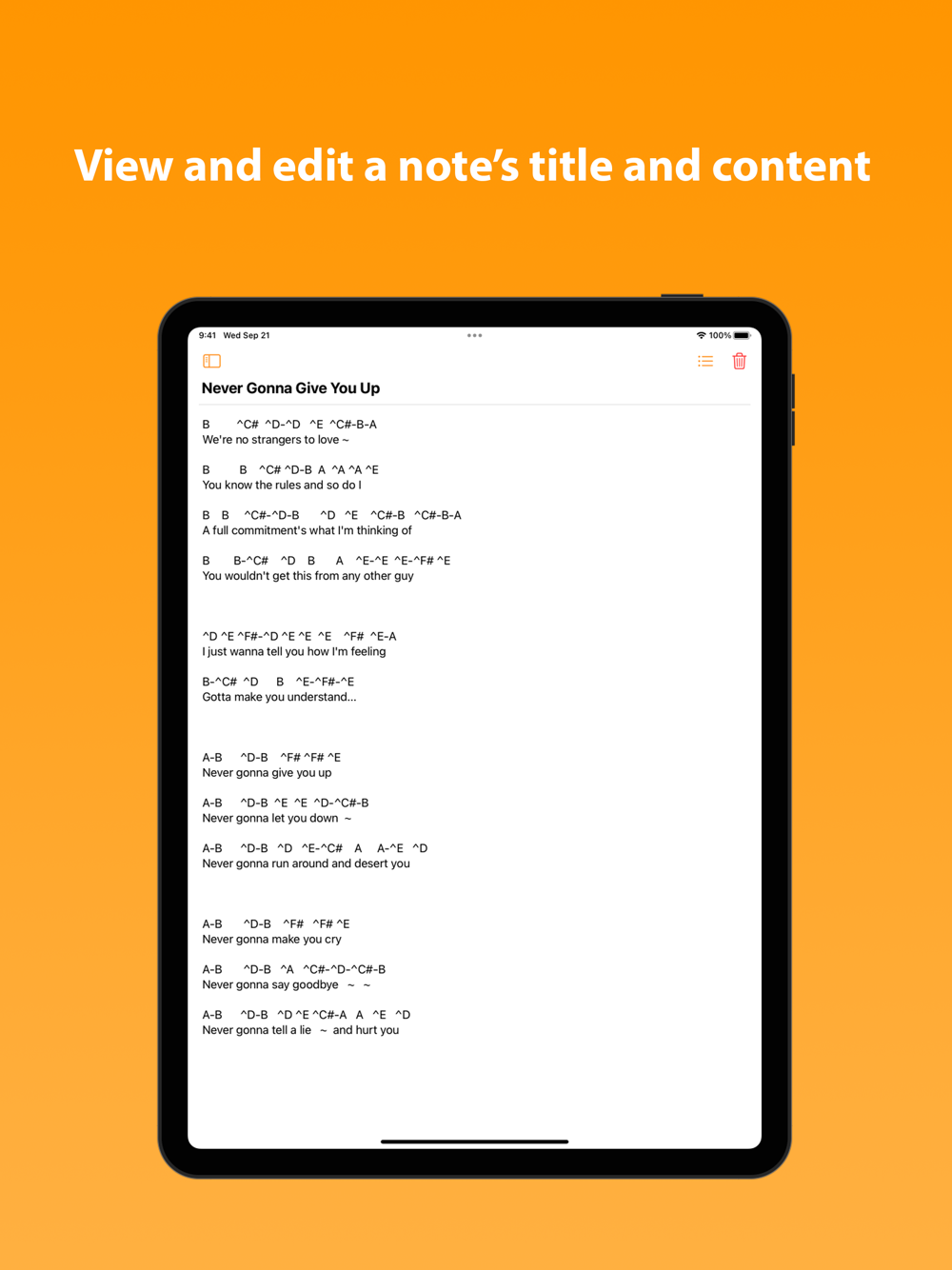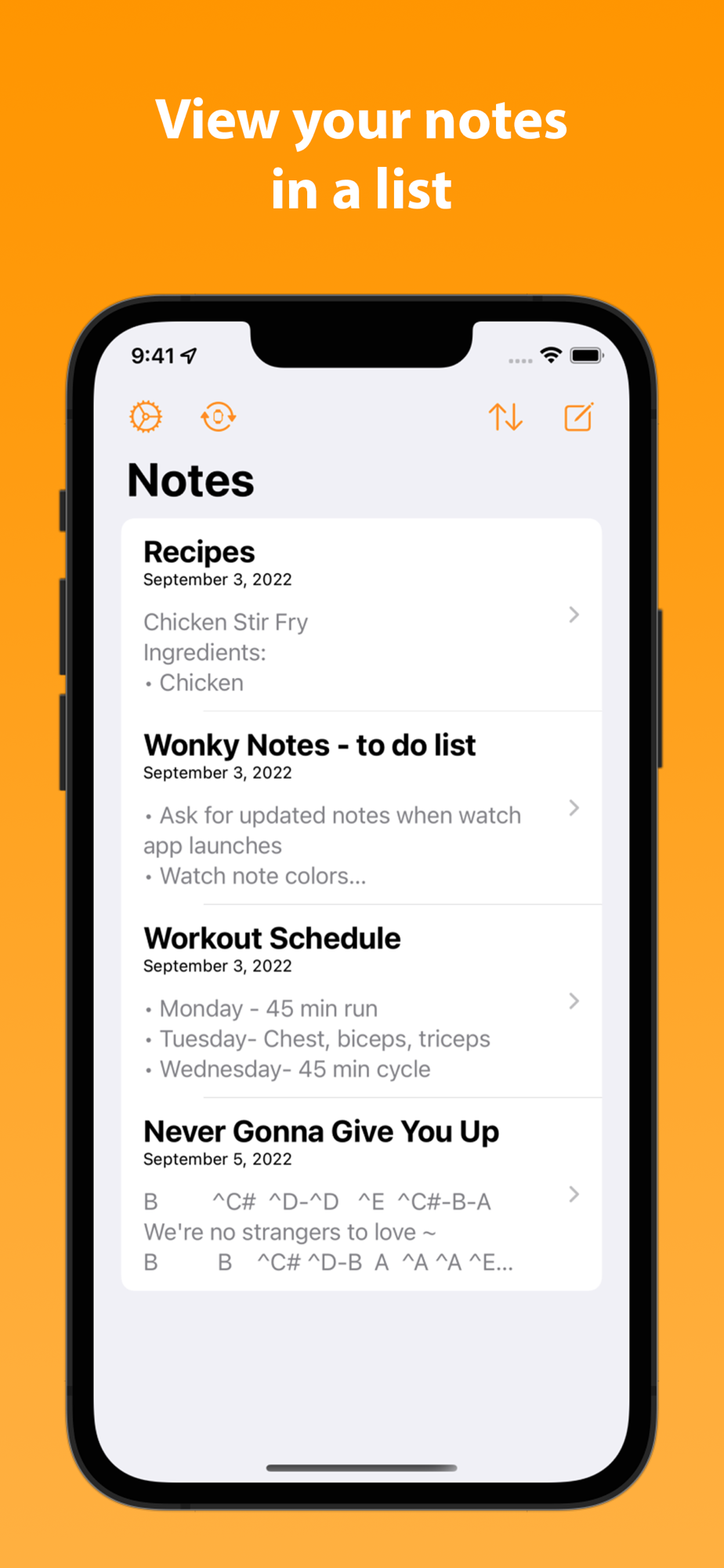 Notes can be created, edited, and deleted on iPhone or iPad and are automatically synced to the rest of your devices. The list of notes can be sorted by the title, date last modified, or the date the note was created. Notes can also be pinned to the top of your list of notes on all devices.