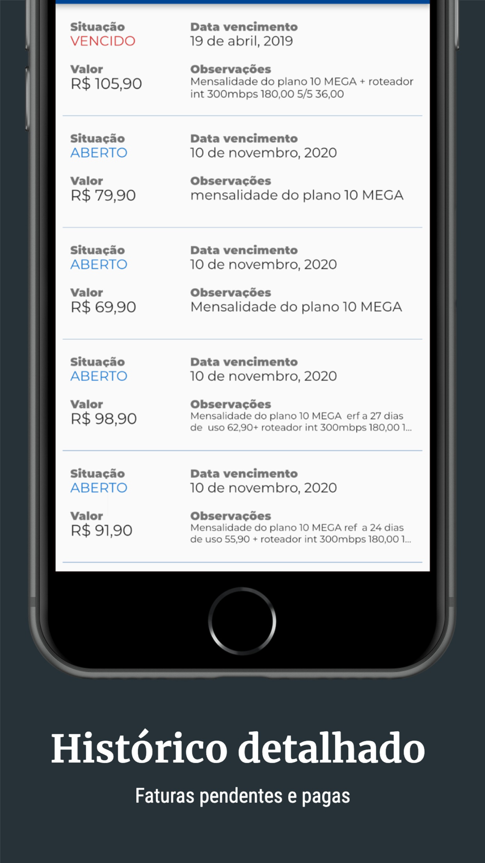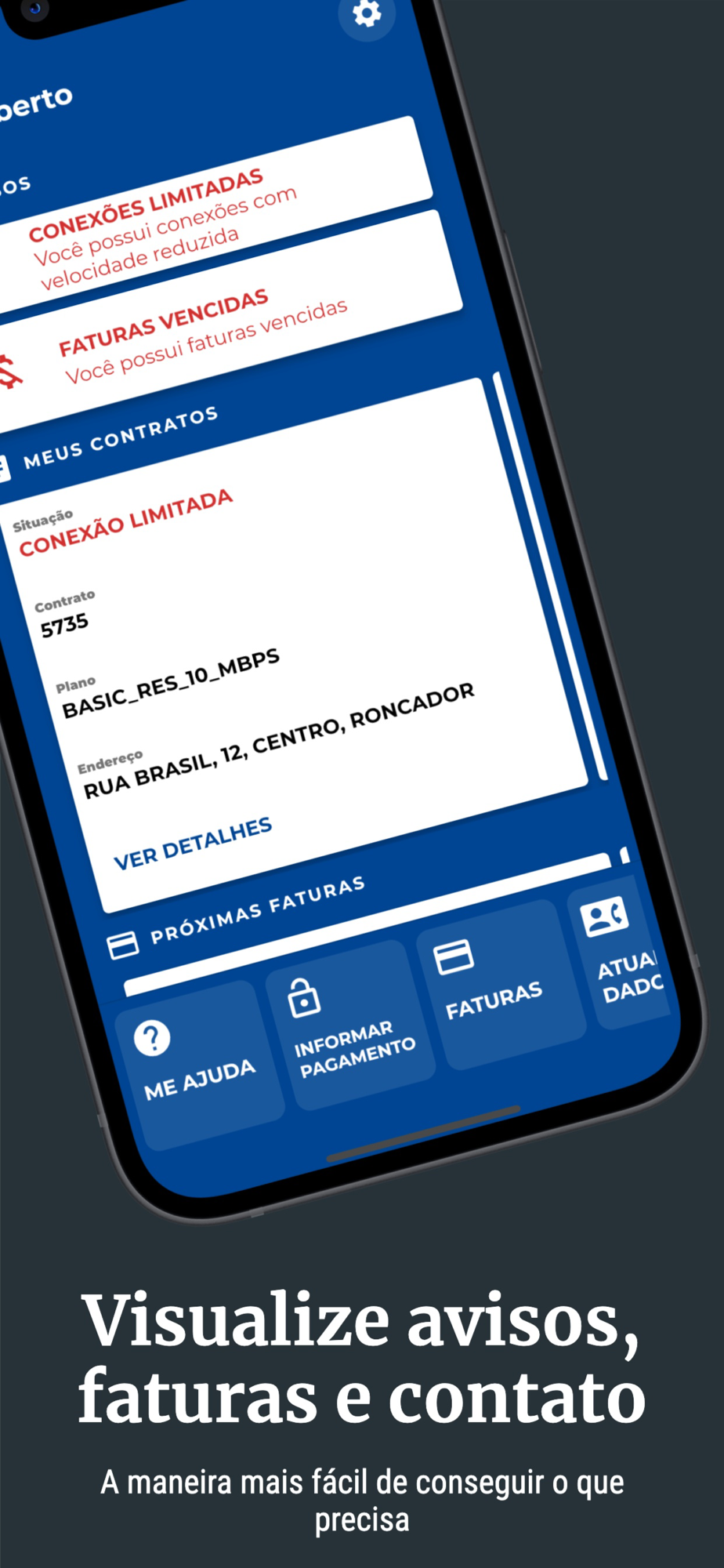 - notificações sobre sua conexão e boletos