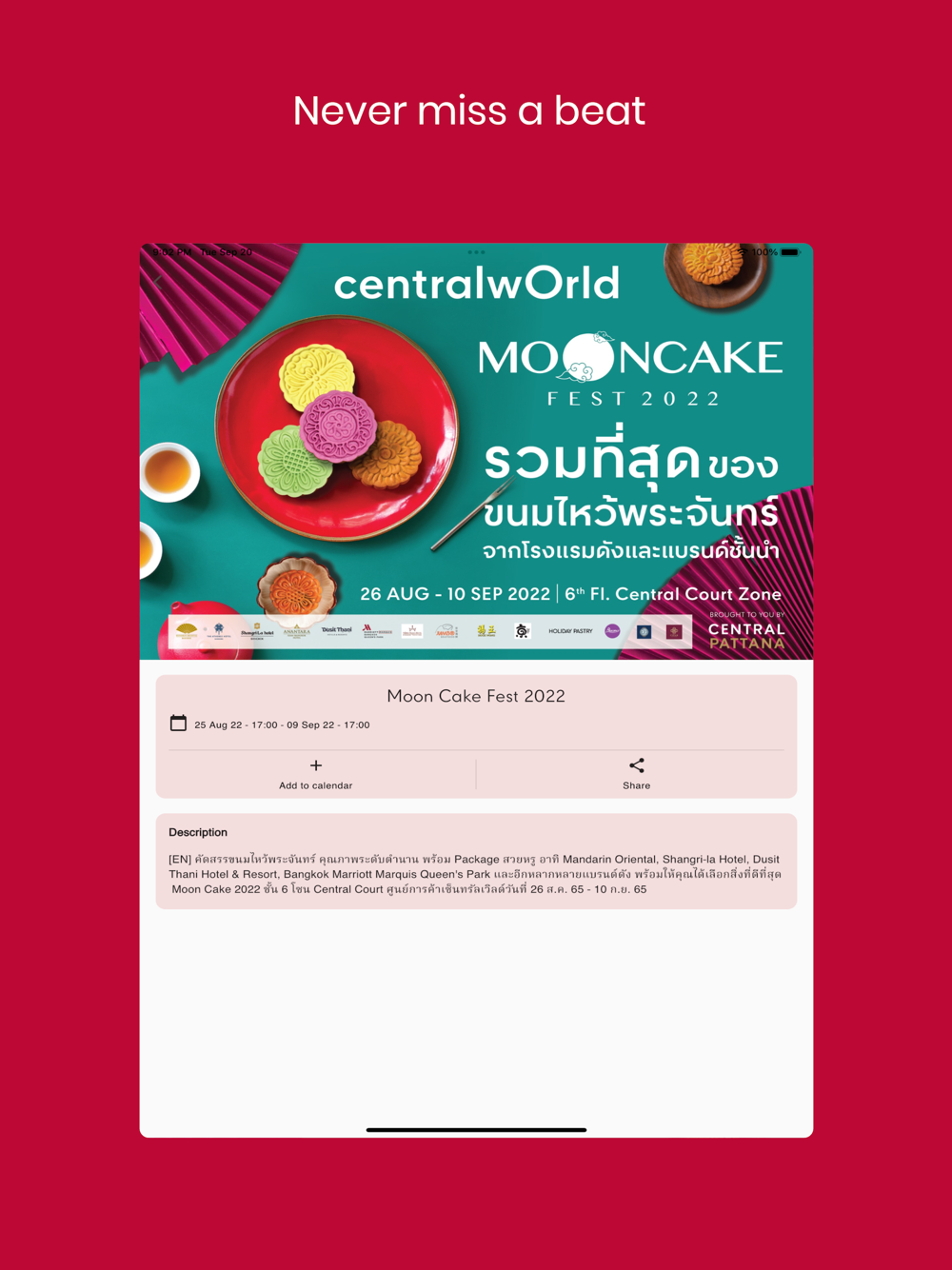 Step into various experiences in our shopping malls. The CENTRAL Life X application offers news, promotions, and exclusive privileges.
