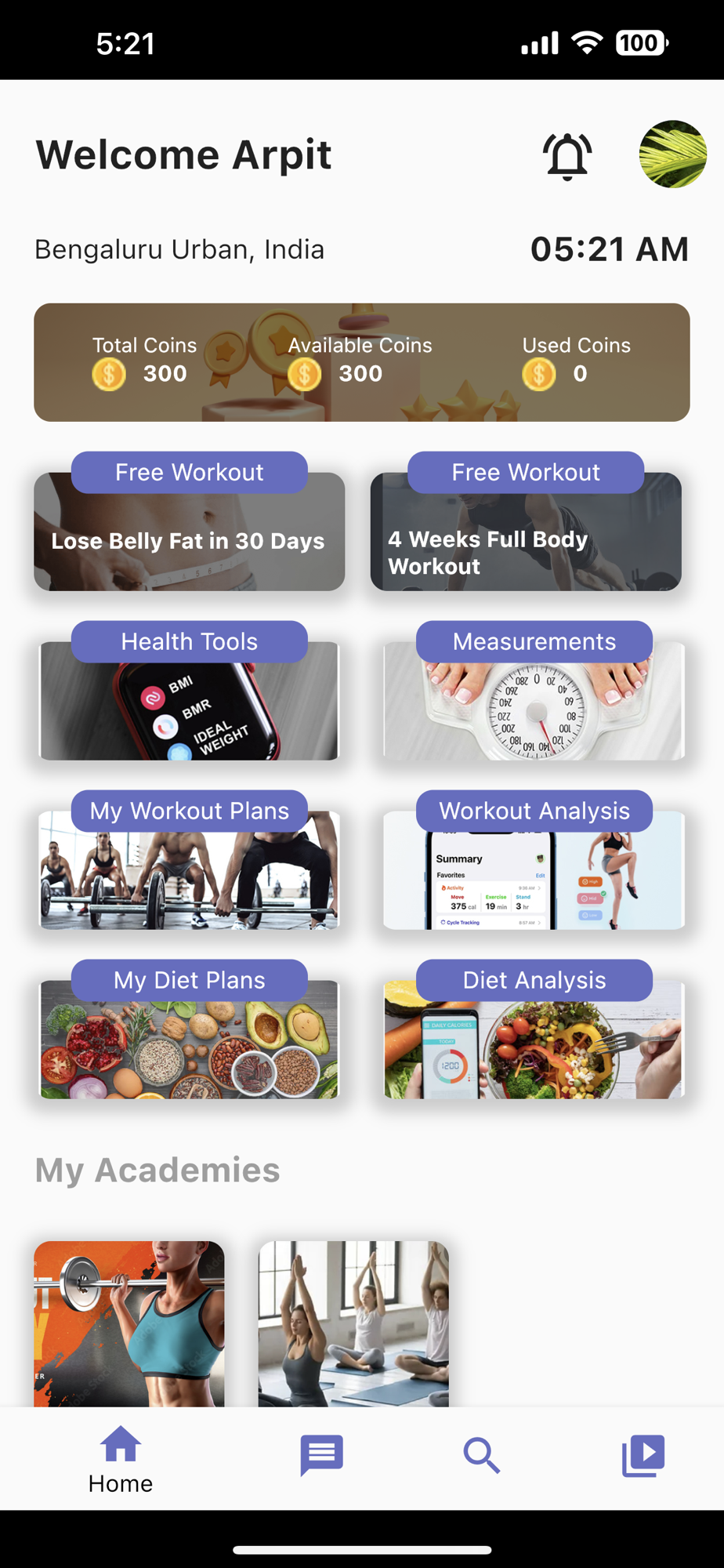 Users can join free workout & diet plans & earn rewards. By using free health calculators, Users can keep track of their weight, BMI, BMR, Body Fat, etc.