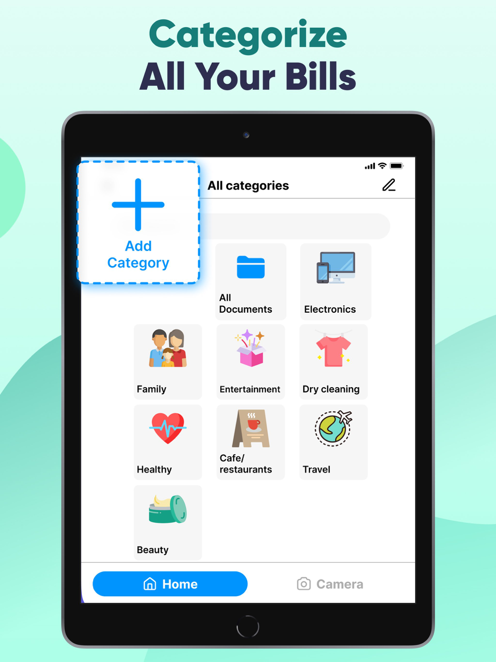 Budget:Bills & Receipt Scanner is an application that will help you control your expenses. You can scan a check from a store, a receipt, and any other payment document. The costs in the application will be shown as a pie chart divided into categories. In the menu, you can select or add absolutely any category and track the costs for each specific item. You can also find the category you are interested in through the search bar.