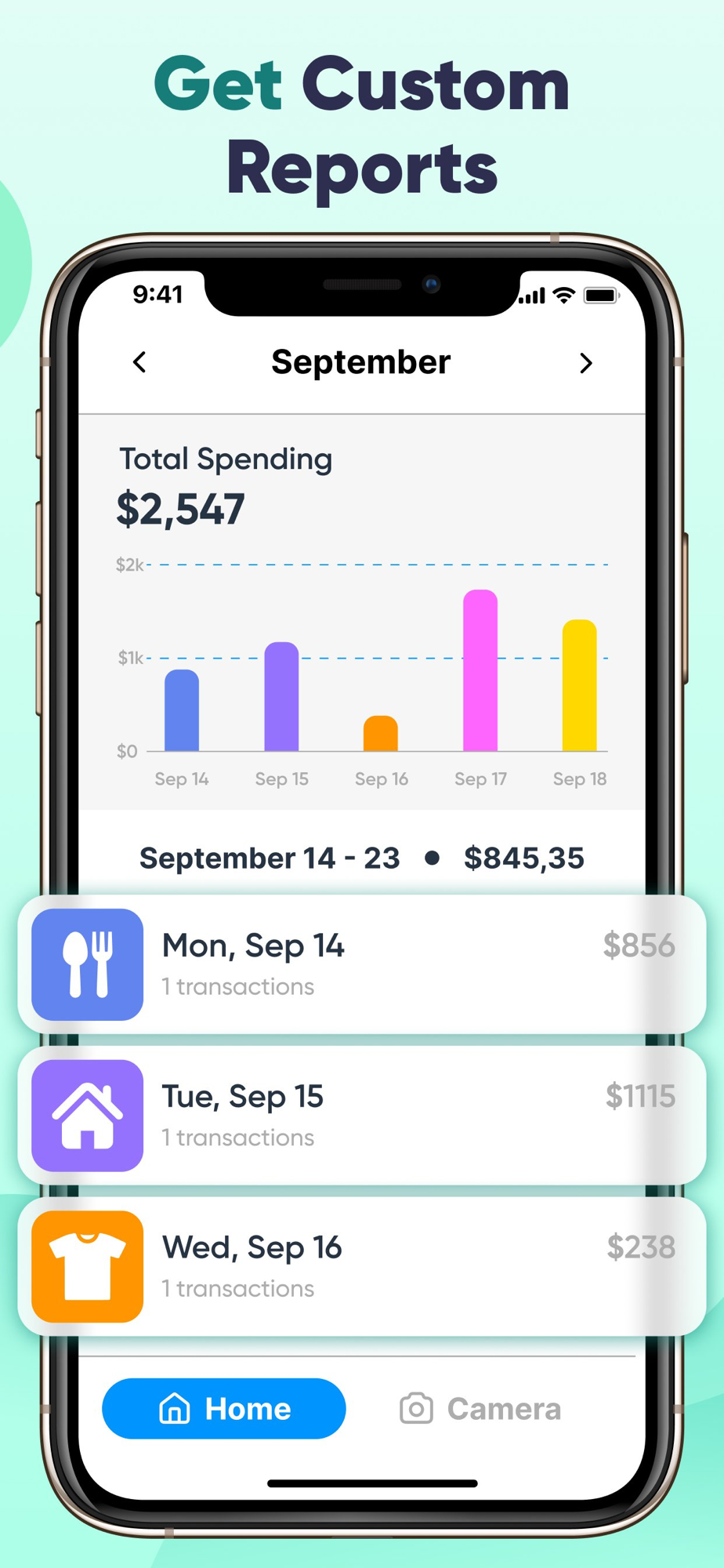 The application scanner reads all types of barcodes and QR codes. In addition, you can also attach a photo of the receipt to a specific purchase. At the end of the month, you will have a full report on your expenses with all the details. For example, the days you spend the most. Optimize your expenses and plan your budget for the long term.