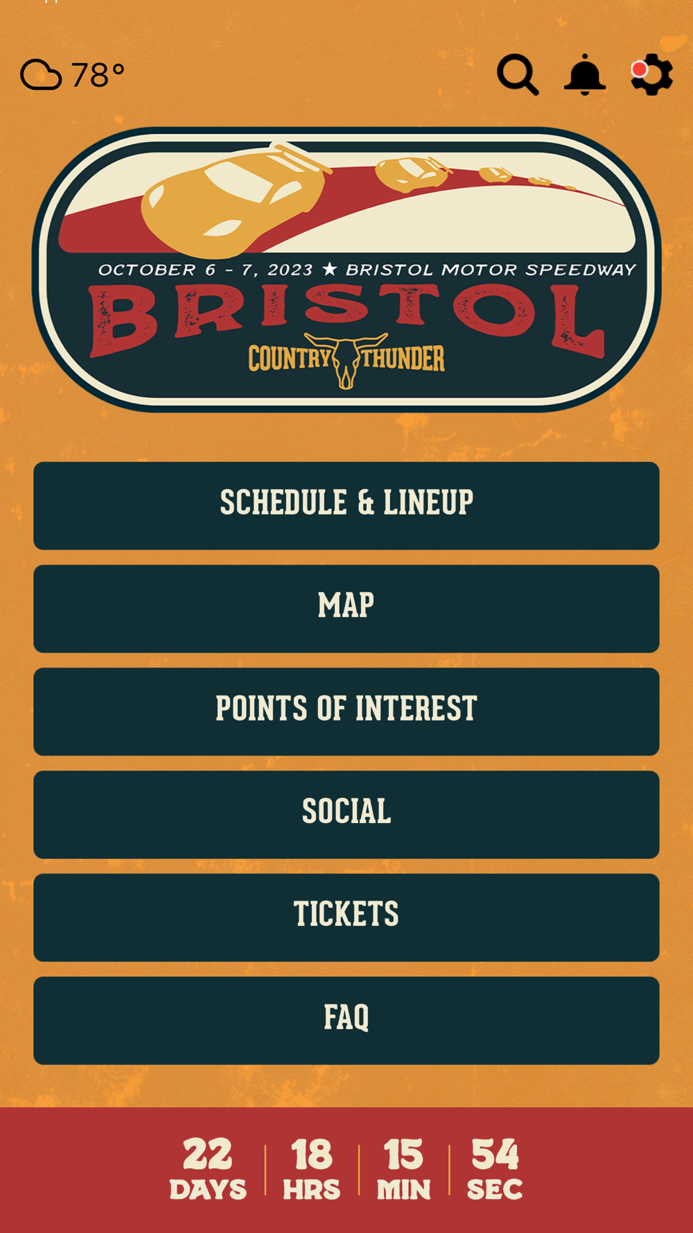 The official app for Country Thunder Bristol 2023. The Country Bristol app is your source for all the latest festival information. See who is playing when, find food options, and information on all of our awesome vendors. Maps, FAQs, and more are included.