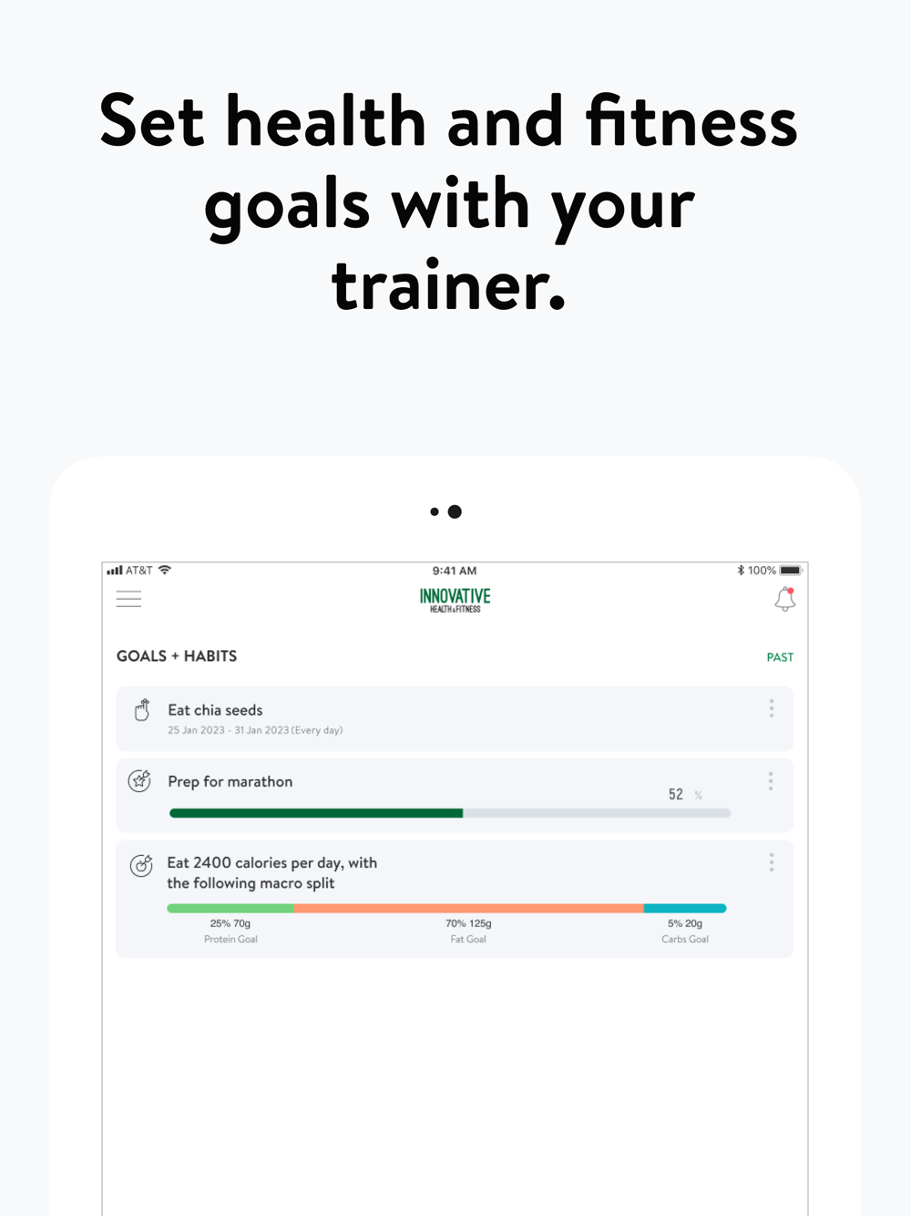 With the Innovative Health App, you can start tracking your workouts and meals, measuring results, and achieving your fitness goals, all with the help of your personal trainer.