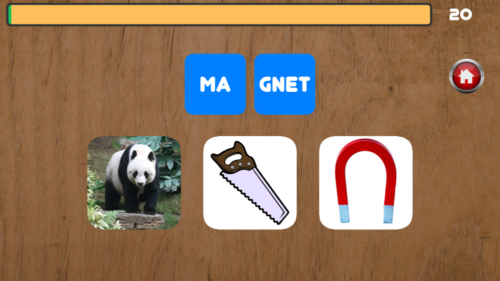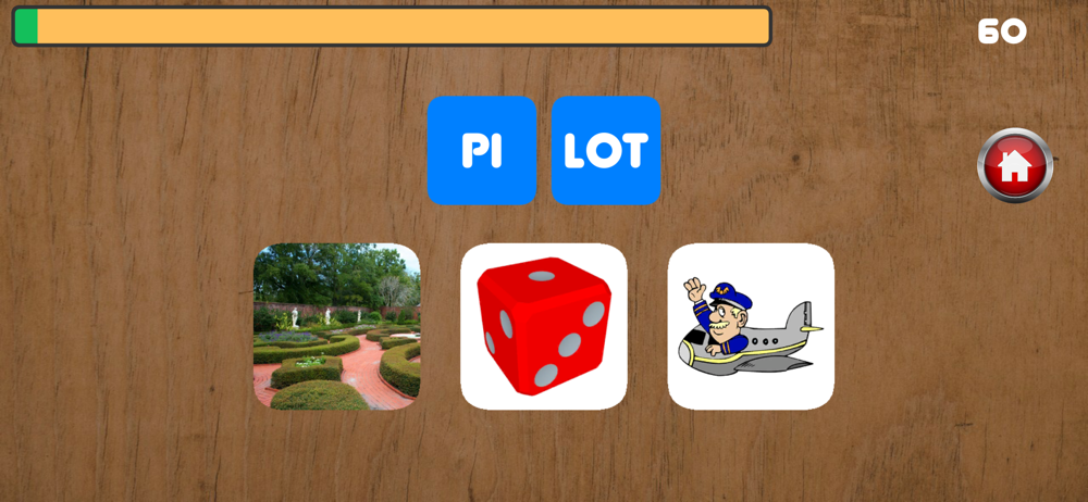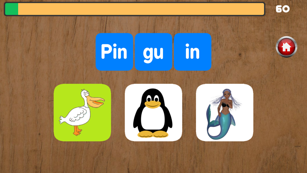 Lesen Sie das in Silben unterteilte Wort und wählen Sie das entsprechende Bild aus. Wenn Sie das richtige Bild auswählen, können Sie zum nächsten Wort übergehen.