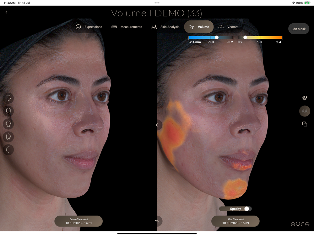 The Aura 3D Imaging System captures a photo-realistic digital twin of a patient’s face and neck with a single capture, comprehensively analyses facial structures, skin condition, and volumetric changes in an instant, and creates a shared visual language between patient and practitioner.