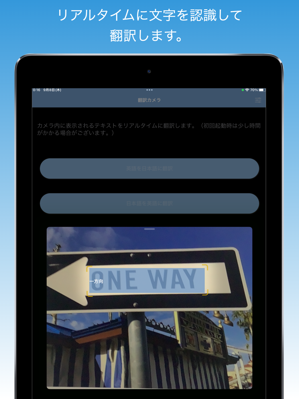 リアルタイムに文字を認識し翻訳してくれるアプリです。