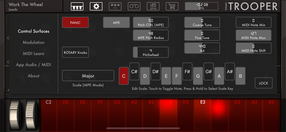 The robust MIDI implementation also includes MPE support, and the synth is able to I/O MIDI performance data. The “MagTouch” virtual controller lets you to play and record (in AUv3 hosts so enabled) over the MPE protocol. MIDI learn is made easy via a visual interface, and users can save, patch-link, and share MIDI CC maps. Bluetooth MIDI input is also supported.