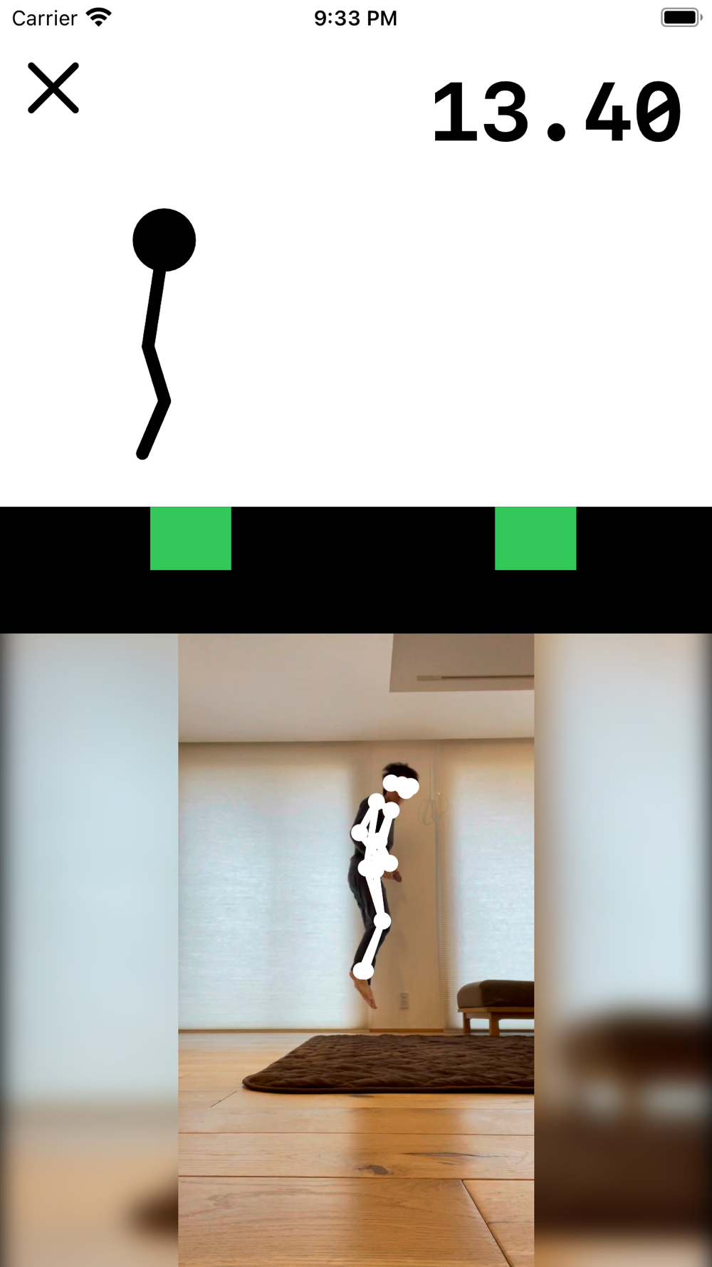 "Pose de Jump" is a game which you can play using your body as a game controller. The camera captures your whole body and the character in the game jumps when you jump. Jump to avoid ponds of poison and lava, and squat to avoid blocks.