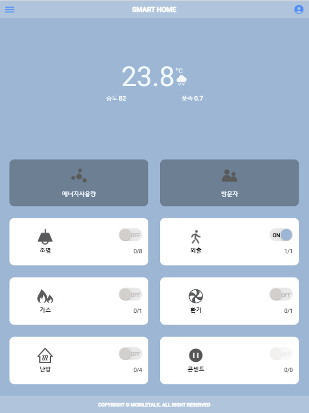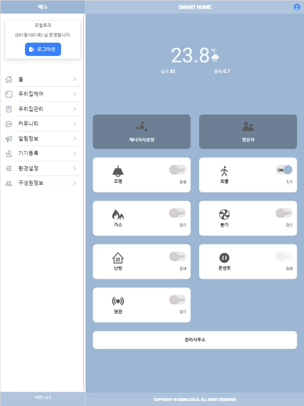 이 앱은 우리집제어, 우리집관리, 커뮤니티 등으로 구성됩니다.