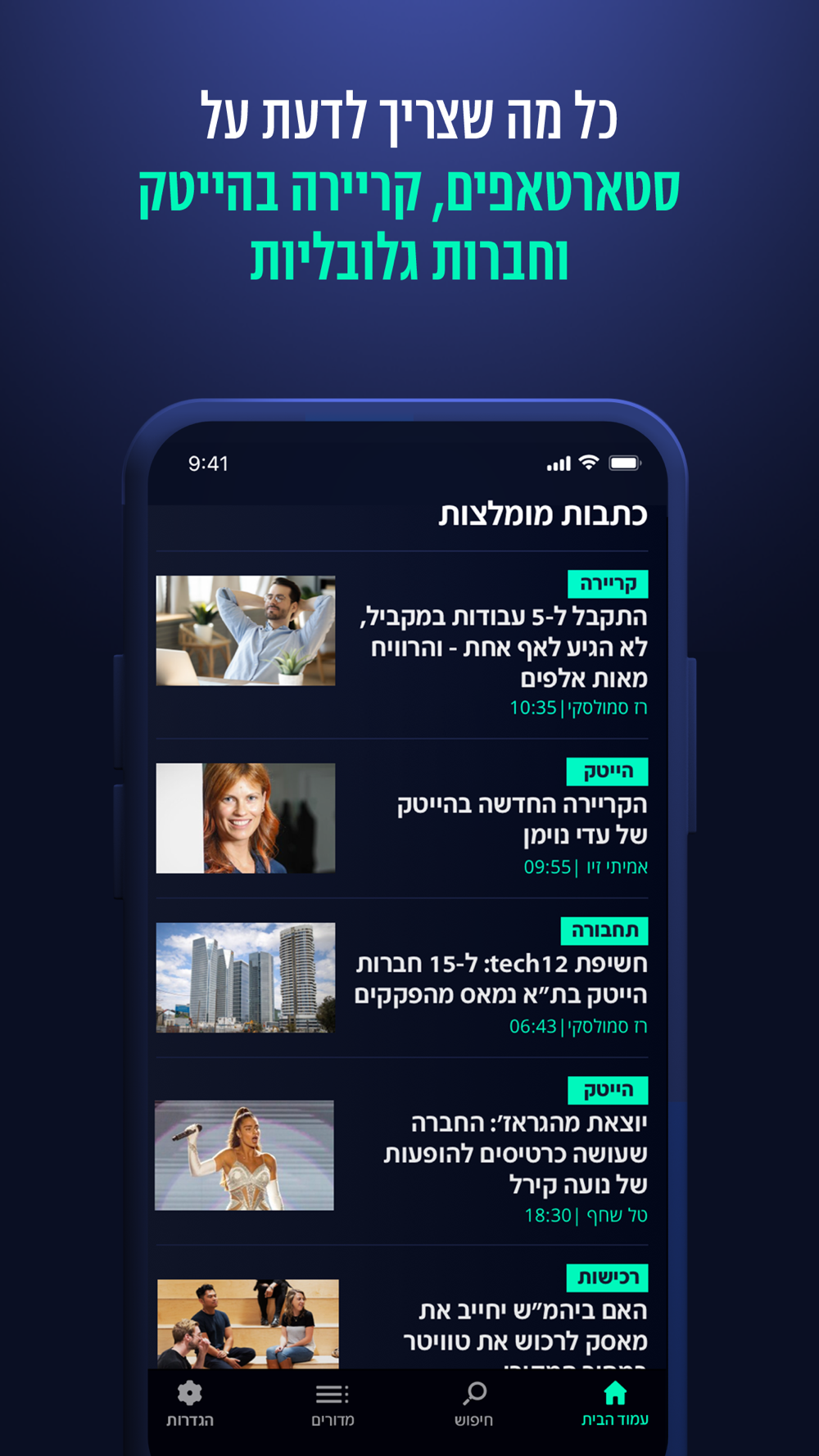 הצטרפו ל-tech12, האתר שעובד בהייטק, ותהיו הראשונים להתעדכן בחדשות הבוערות, הדיווחים, הניתוחים והפרשנויות מנבחרת כתבי הטכנולוגיה המובילה בישראל. באפליקציה תתעדכנו בזמן אמת בהתרחשויות החשובות בעולמות הטכנולוגיה והסטארט אפים מהארץ מהעולם, ותקבלו פרשנויות וניתוחים שיעניקו לכם את התמונה המלאה על הנעשה בסטארט אפים, היוניקורנים, חברות הטכנולוגיה הבורסאיות וענקיות הטק. וגם: התמורות והמגמות בעולמות ההון סיכון, תנאי עבודה ומשכורות בהייטק, פיתוחים בעולמות הבינה המלאכותית ומחשוב הענן, סייבר, קריפטו ועוד.