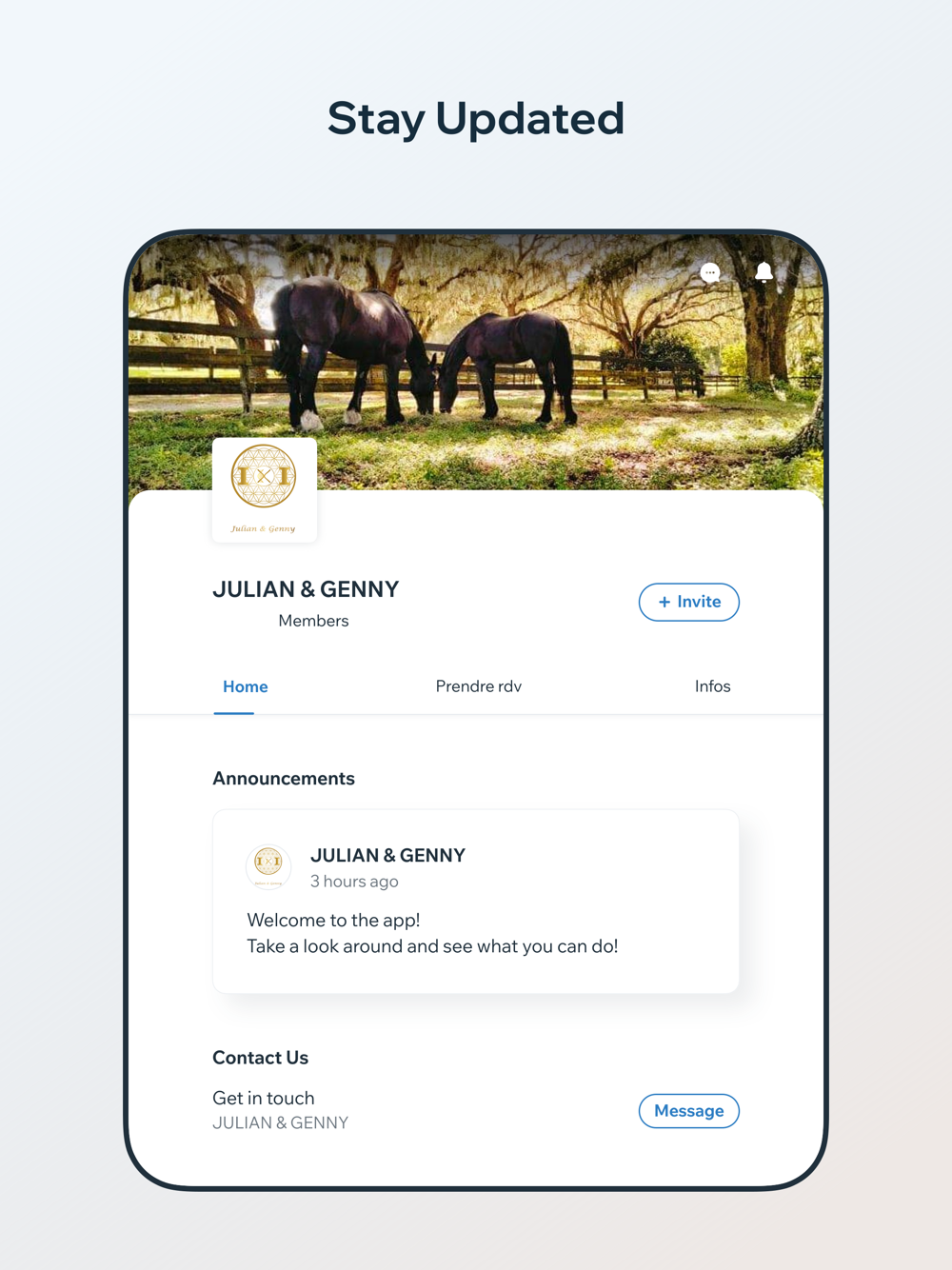 Julian & Genny mettent leur réseau à votre disposition. Utilisez l'application pour prendre RDV ou rencontrer les autres membres de la communauté, poster vos annonces, créer votre profil, rejoindre les groupes de discussion et suivre notre actualité. Rejoignez le chat, et rencontrez les membres de votre région, pour plus d'entraide et de bienveillance animale à proximité de chez vous.