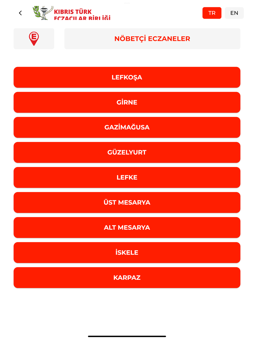 With the official application of the Cyprus Turkish Pharmacists Association, you can access the current on-duty pharmacies in all districts of Northern Cyprus, Google Maps route review information, phone number and address information.