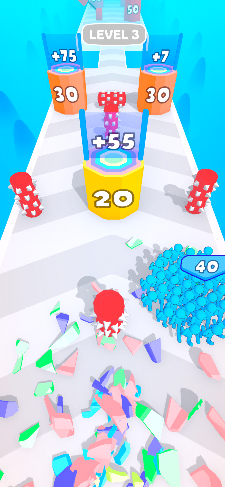 smash through all the obstacles and collect the lenses, they'll make you more crowded.