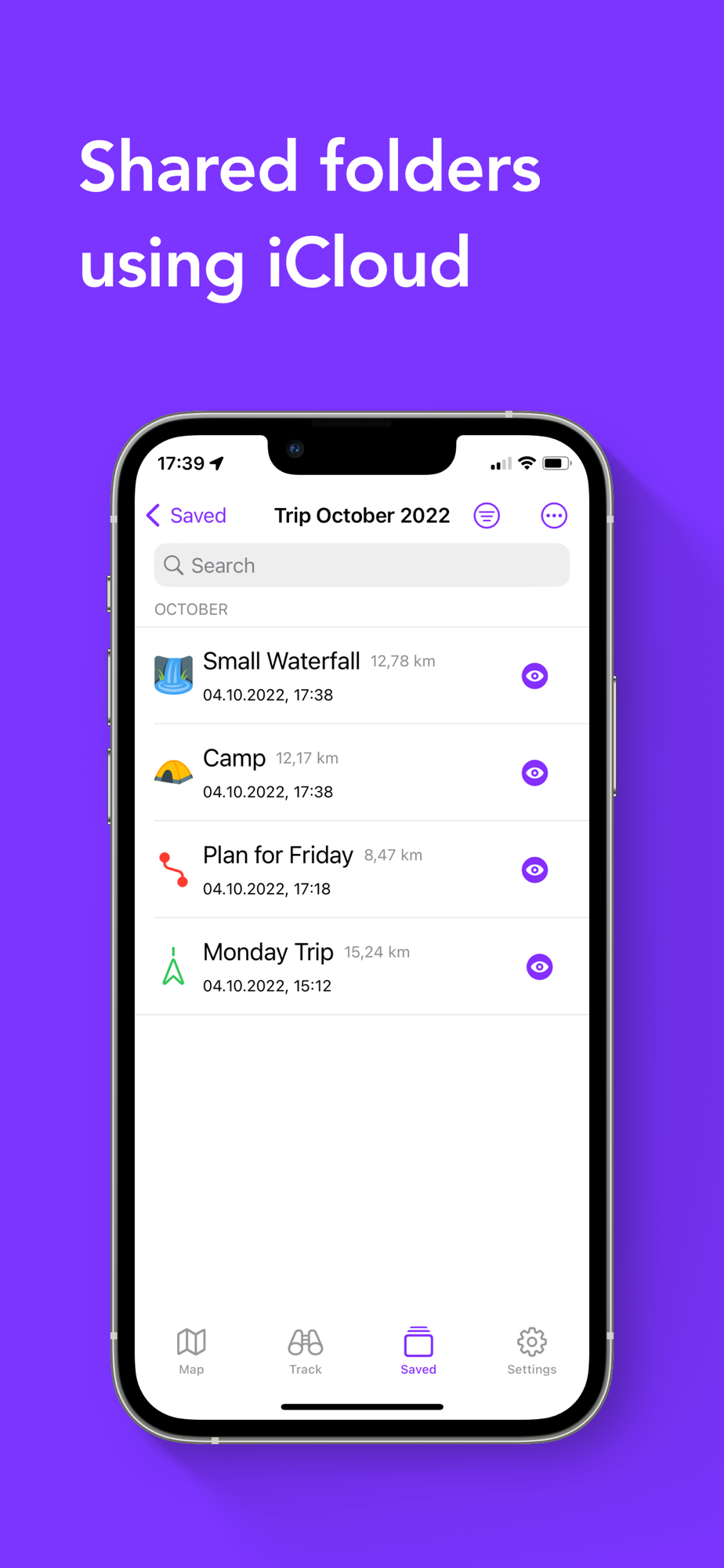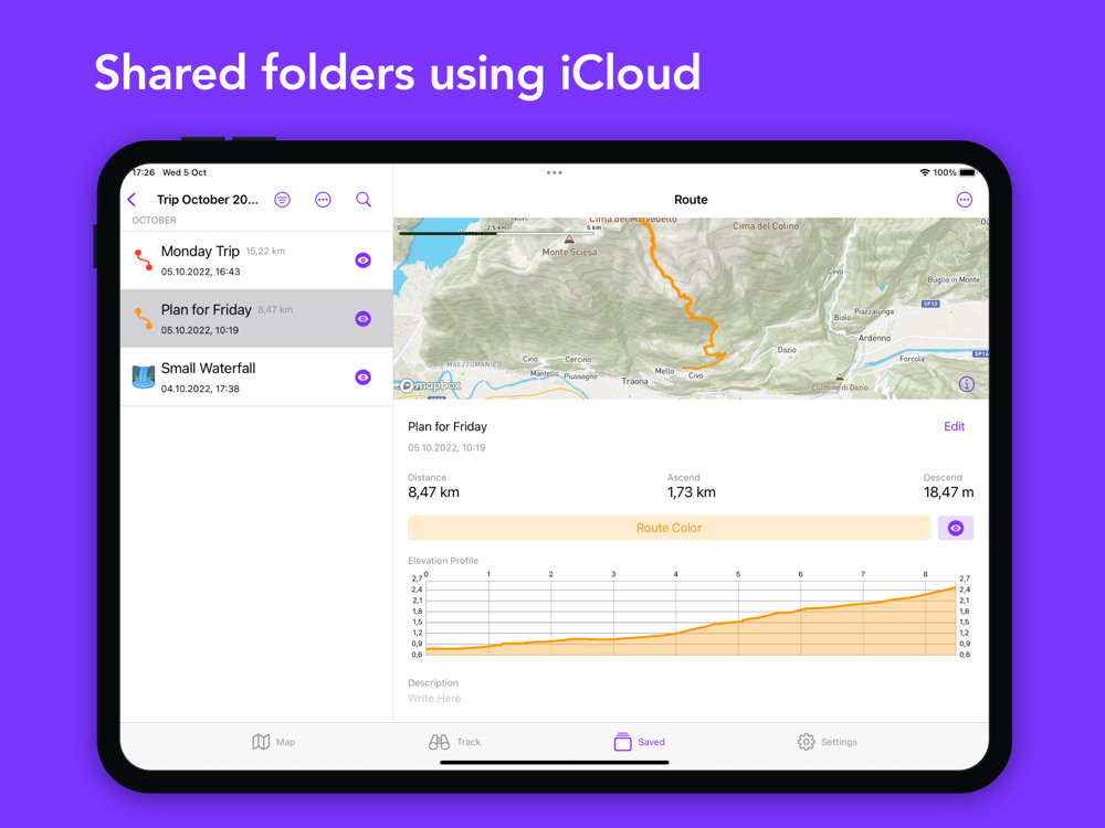 Planning your adventure with someone else? Everest GPS makes it easy to share data with your companions. Touch and hold your folder and share your routes, tracks, and waypoints with other Everest GPS users using iCloud sharing. If your companions use another app, you can simply export and share an industry-standard GPX file via email, messages, or any other app you have on your device.