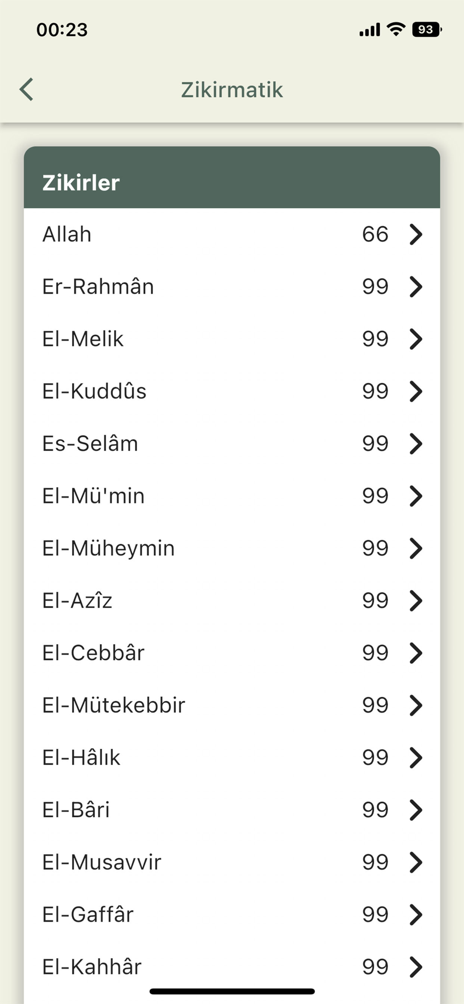 Uygulama içindeki zikirmatik sayesinde tesbih ile yapmanız gereken zikirleri uygulamayı kullanarak yapabilir ve kaydedebilirsiniz. Hangi zikirde olduğunuzu görebilir ve zikirlerinize kaldığınız yerden devam edebilirsiniz. Sınırsız zikir ekleyebilir veya uygulama içinde bulunan zikirleri kullanabilirsiniz. (Salavat, La Havle, Esmaül Hüsna) Ücretsiz zikirmatik indirip hemen kullanabilirsiniz. Günlük zikir sayacı için tam ihtiyacınız olan uygulama!