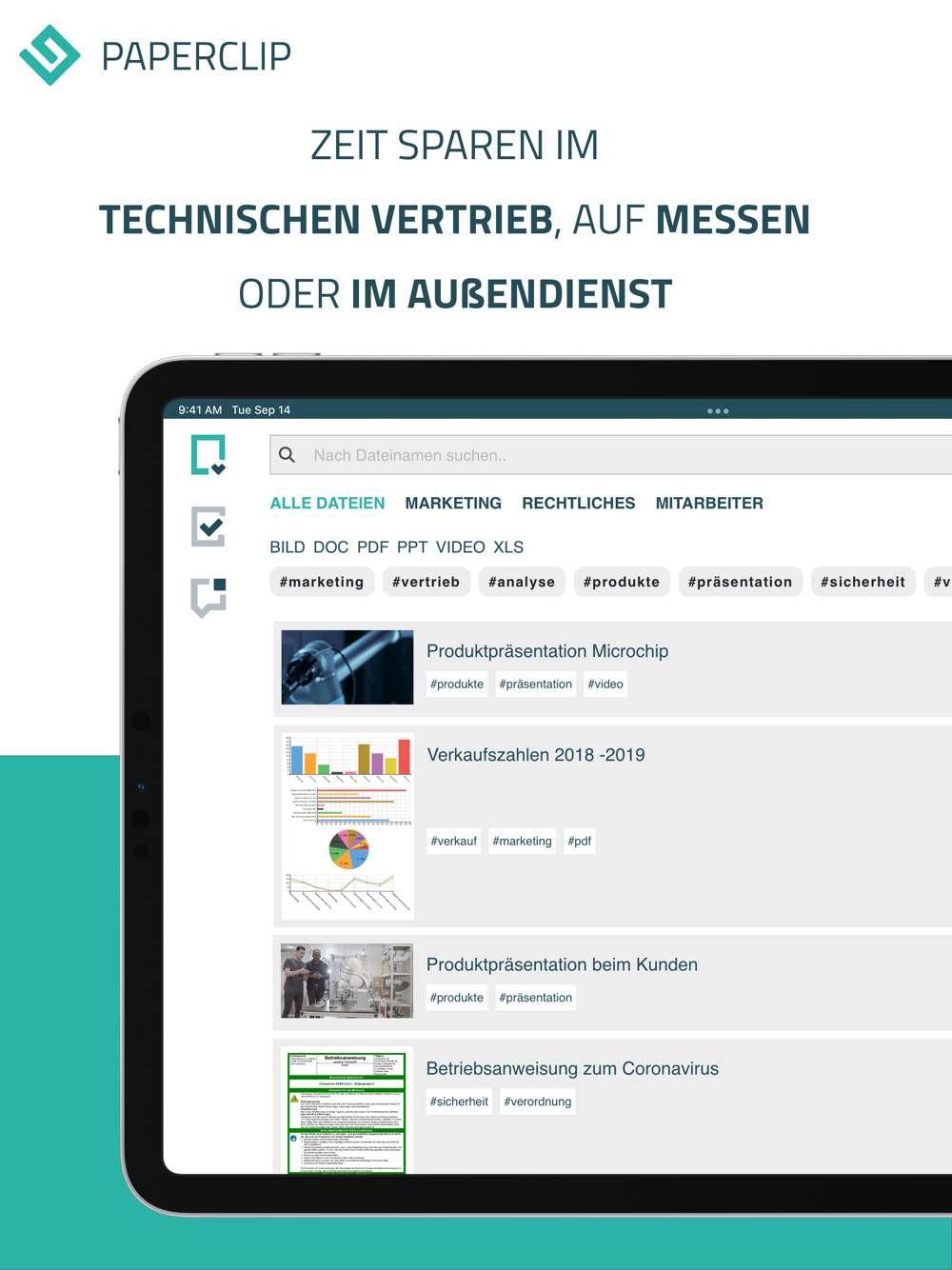 Unsere Software passt sich individuell an die unternehmensspezifischen Bedürfnisse und vorhandenen Softwarelösungen an und wird so zu einem entscheidenden Zahnrad im Vertriebsworkflow. Seit über 10 Jahren verwenden Unternehmen von mittelständischer Größe bis hin zu Konzernen unsere Paperclip App im Vertrieb auf Messen, oder im Außendienst bei Kundenbesuchen.