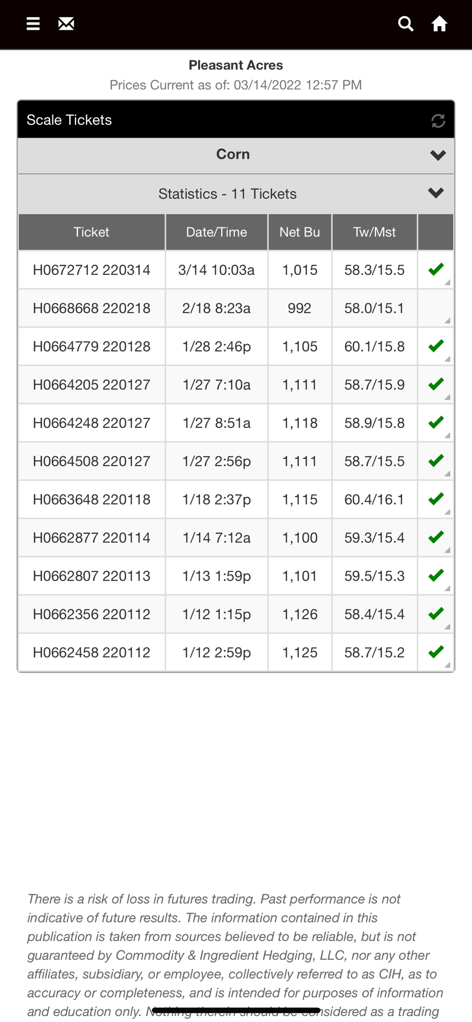 Track your scale tickets, contracts, and settlements plus monitor markets and cash bids right from your mobile device. Available for growers to download and use at Red River Energy.
