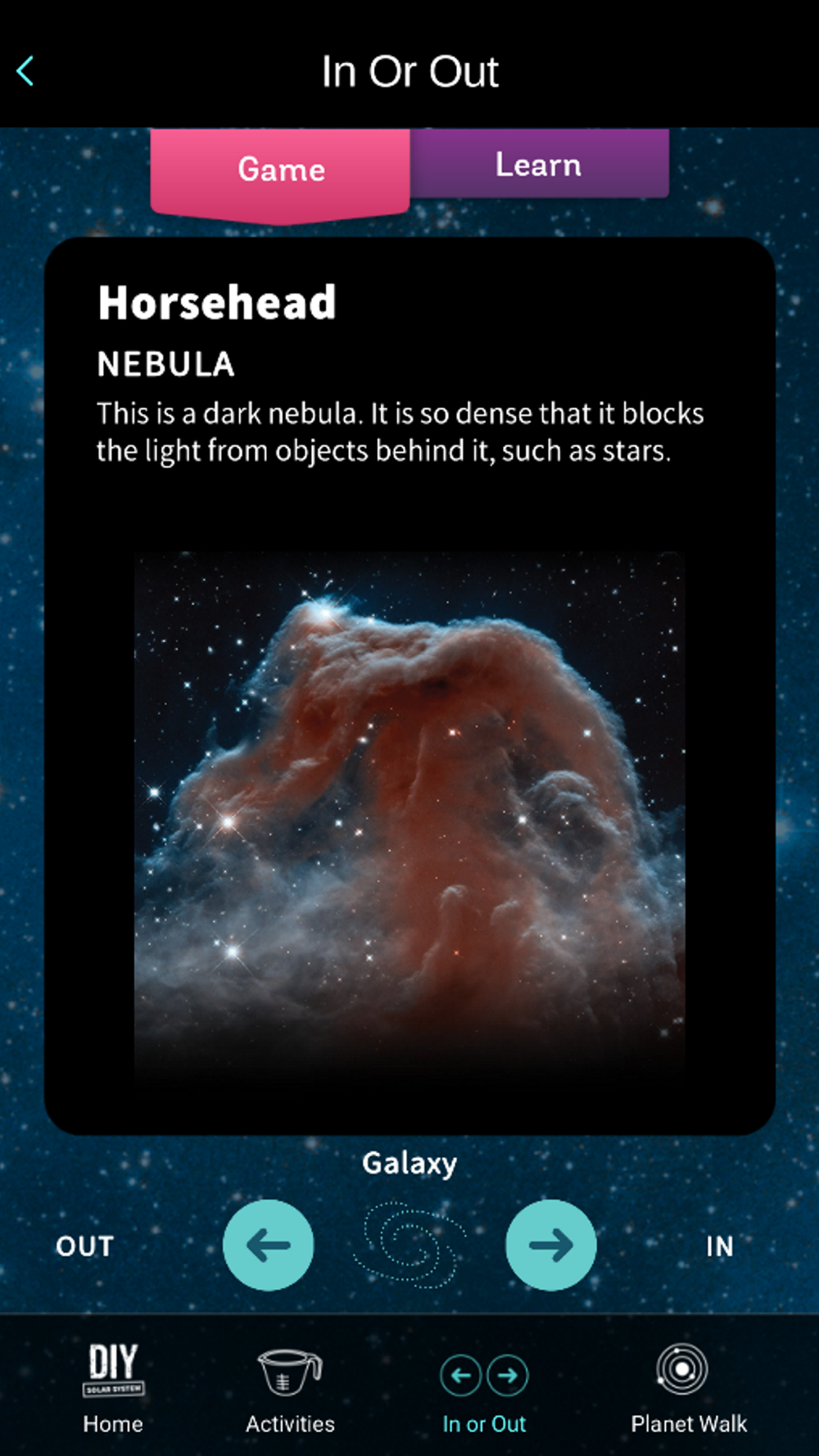Quickly scan awe-inspiring images of space objects from NASA’s Earth and space observatories to decide if the objects are in or out of the solar system. While the solar system is vast, it only represents a tiny corner of the universe. After you have mastered your solar system knowledge, challenge yourself to a new round of objects in or out of our home galaxy, the Milky Way.