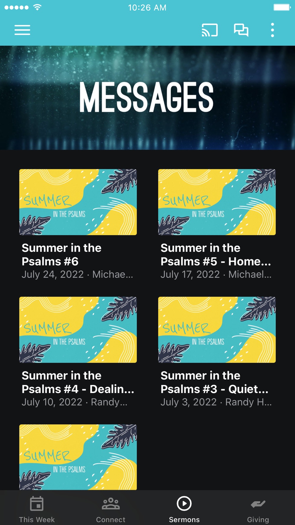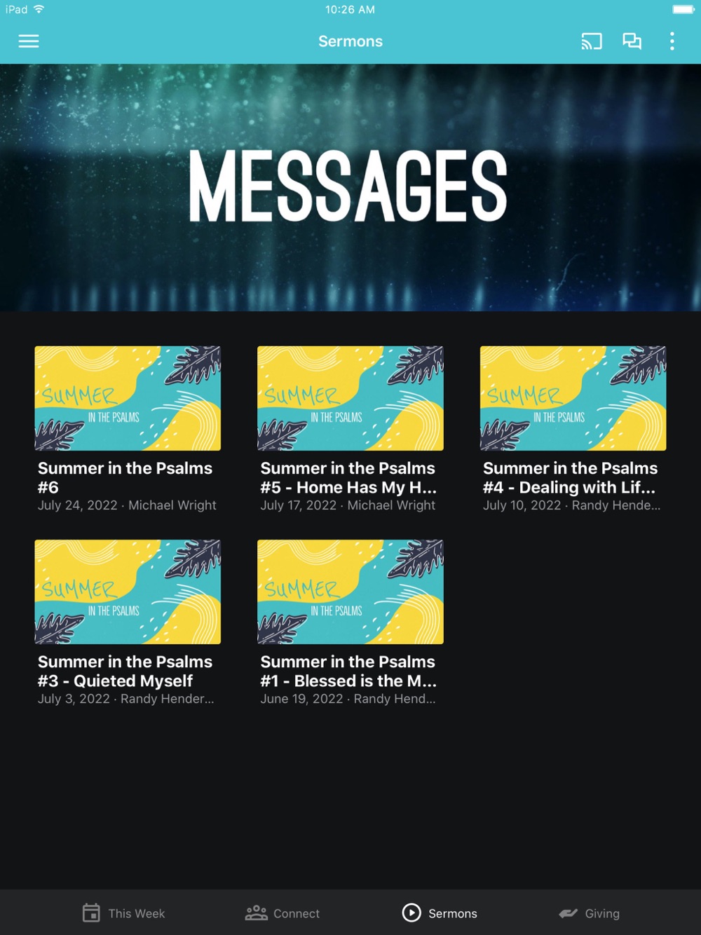 This app will help you stay connected with the day-to-day life of our Big Branch Church. With this app you can: watch or listen to past messages; stay up to date with push notifications; share your favorite messages via Twitter, Facebook, or email; and download messages for offline listening.