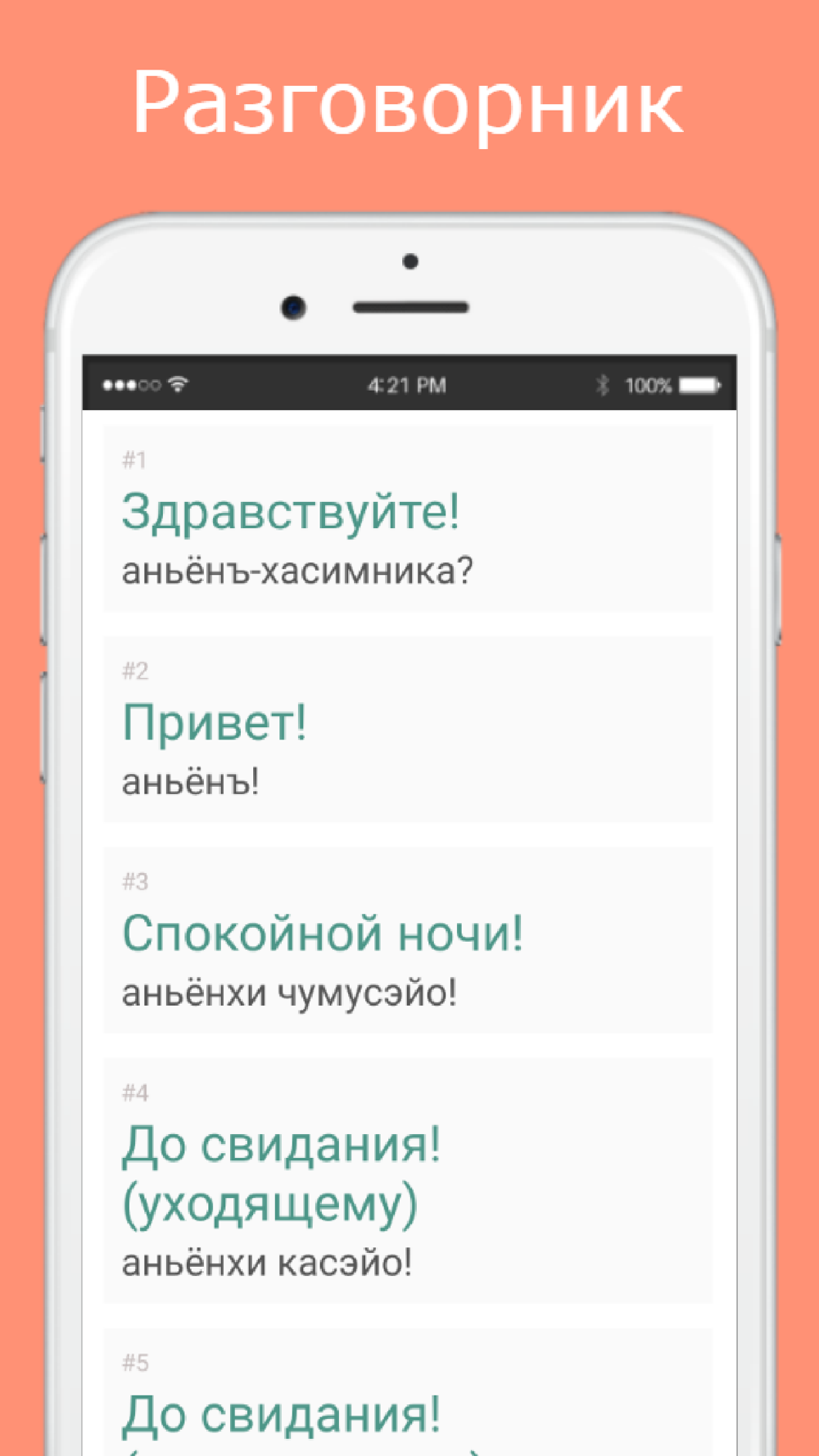 Русско-корейский разговорник можно использовать соответственно, как разговорник, так и инструмент для изучения корейского языка. Все корейские слова написаны русскими буквами и разбиты на 14 логических тем, то есть разговорник рассчитан на русскоговорящего пользователя (туриста).
