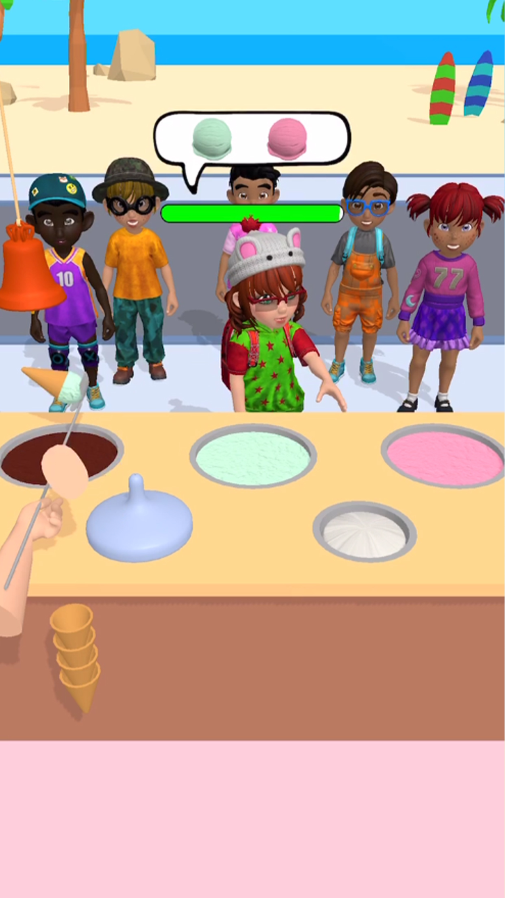Entertain your customers by playing with an ice cream scoop! Pull and rotate your scoop to trick your customers but not to the point of making them angry!