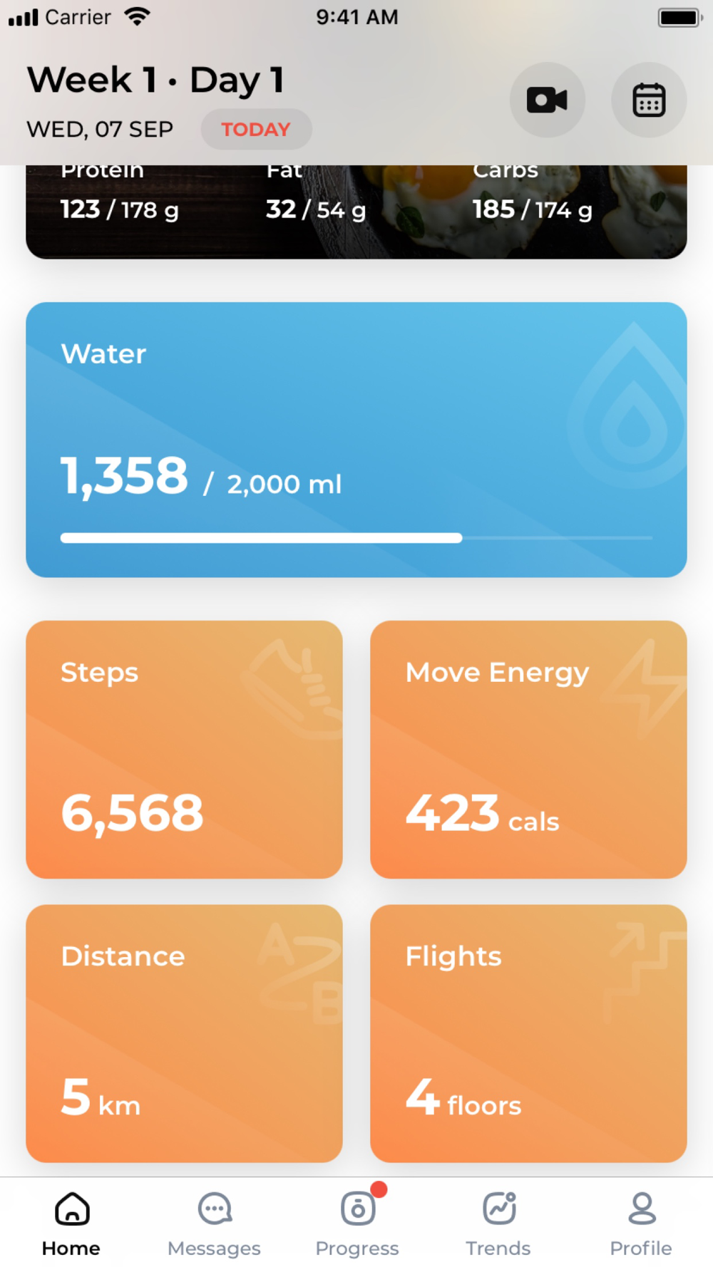 The app integrates with Apple Health to show your daily activity - distance, steps, active energy, and flights to help you better achieve your goals.