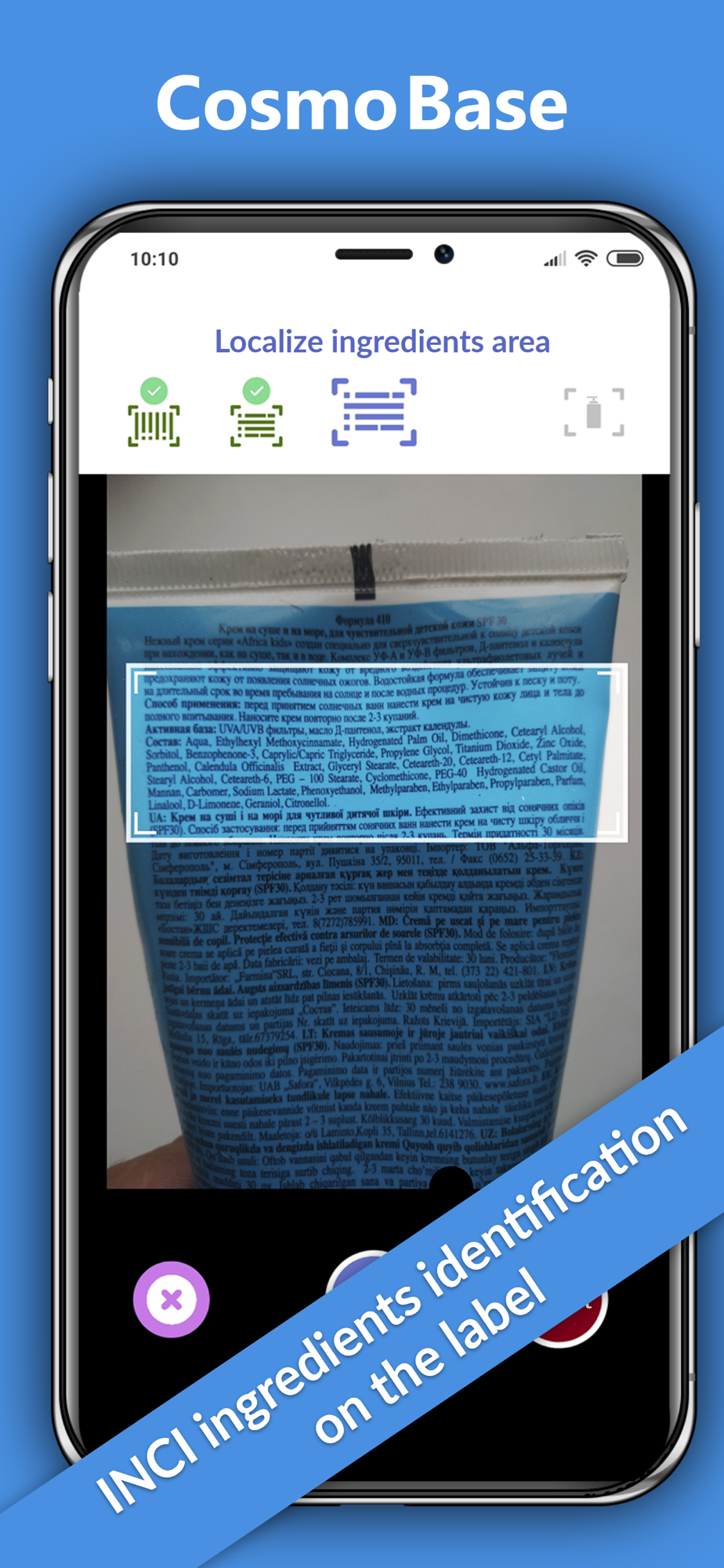 - Fast scanning and decoding of all skincare ingredients contained in the product.