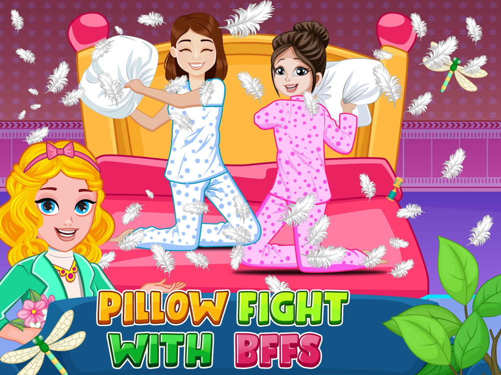 Are you ready for some extreme level of fun? So the wait is over..!! Introducing you to My BFF House Pajama Party Game. The epic pillow fight with night activities at your friend's home and play sleepover games. Pretend play time to take out your favorite pajama night suit and dress up with city friends in this pj party game for girls offline. Night stay at family friend's house, spend the whole night with city friends by watching movies in this slumber party game.