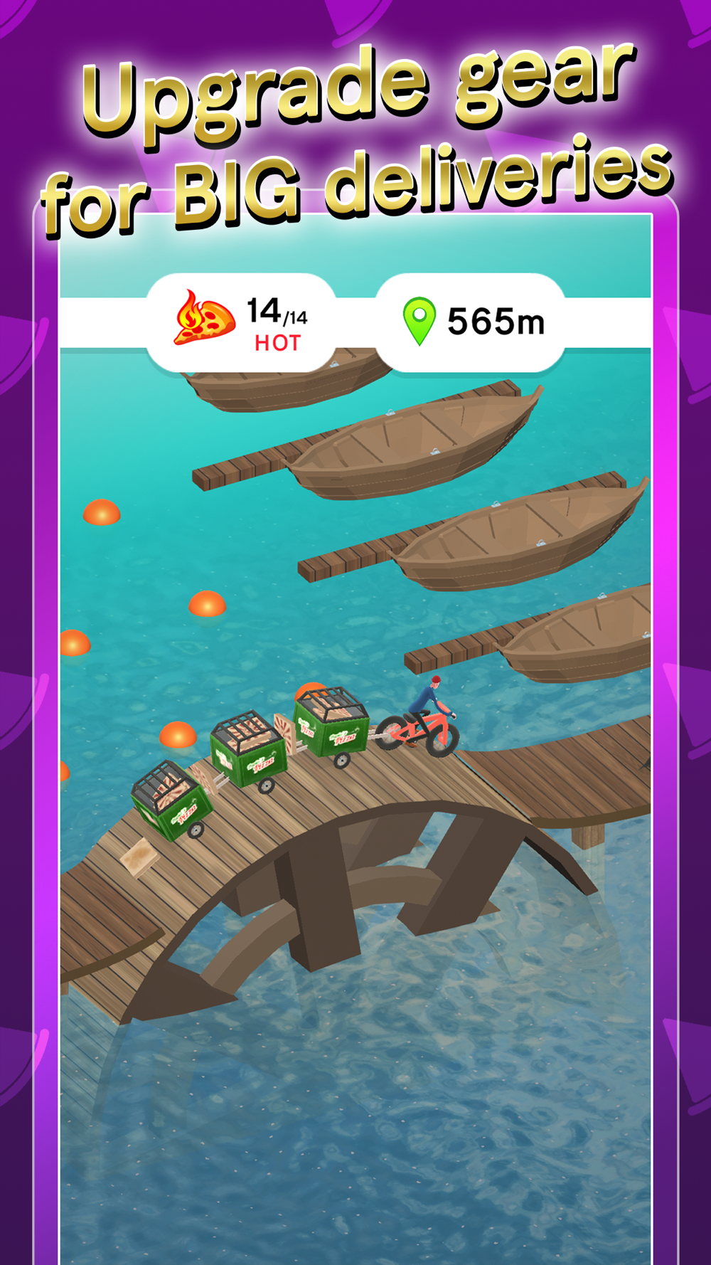 Once your revenue is flowing, it's time to buy new ingredients, bigger ovens, and more pizza trailers for your bike so you can be the biggest pizza powerhouse in town!