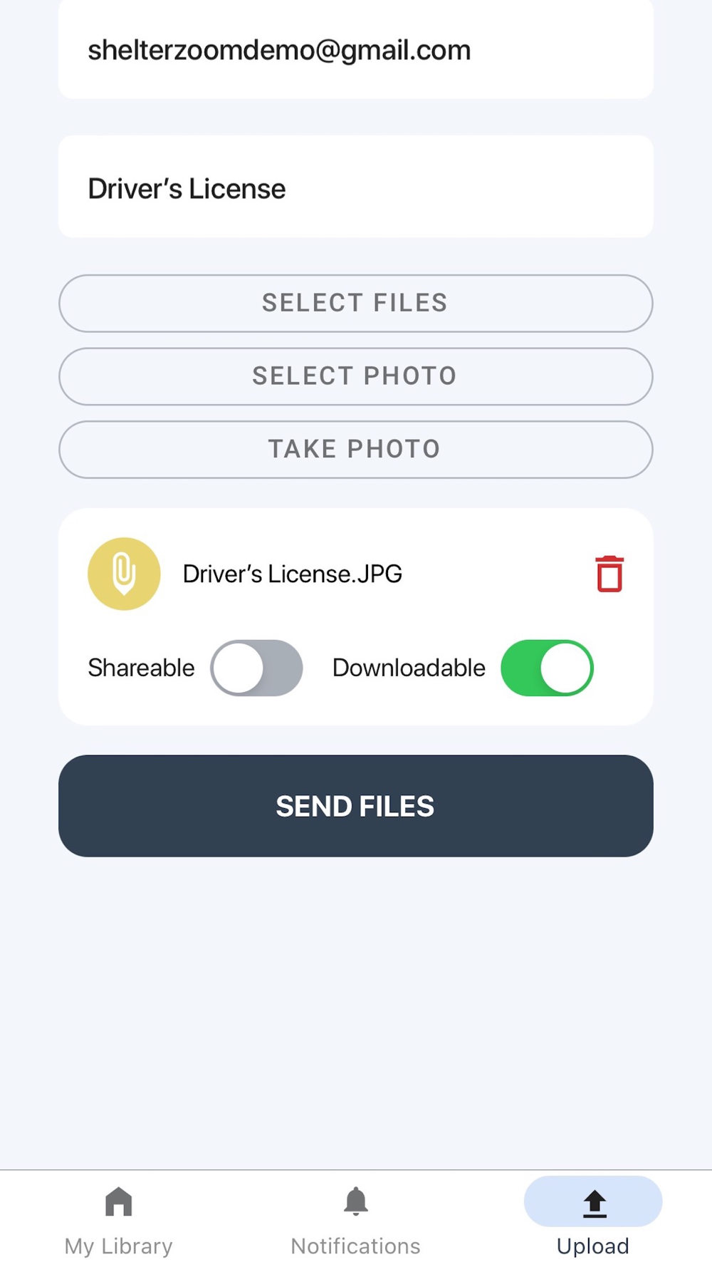 1. Any photos or documents uploaded to the app from your phone are instantly protected.