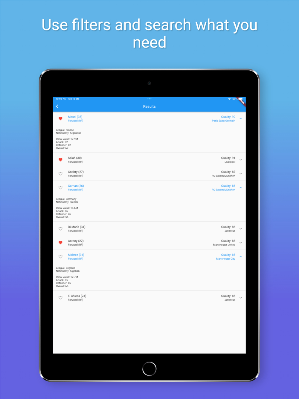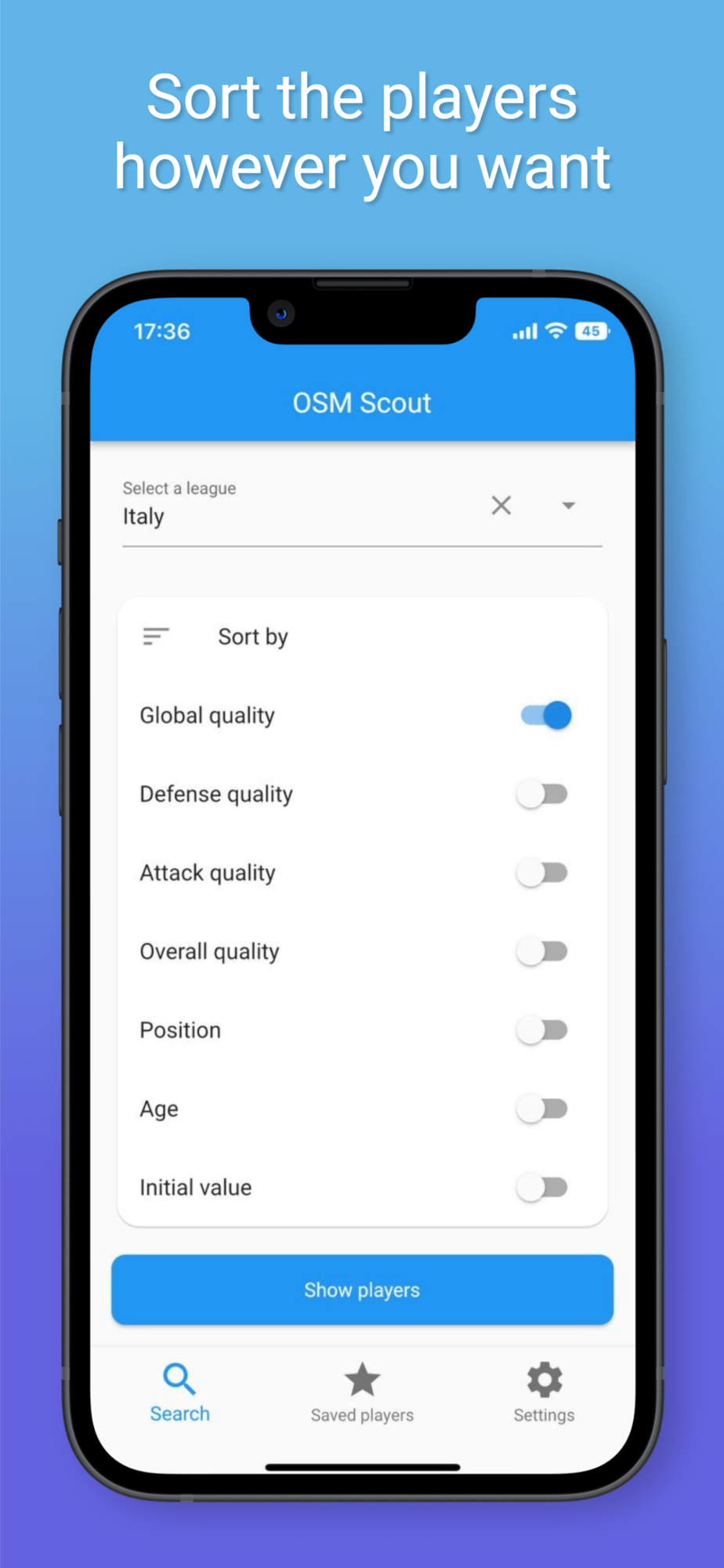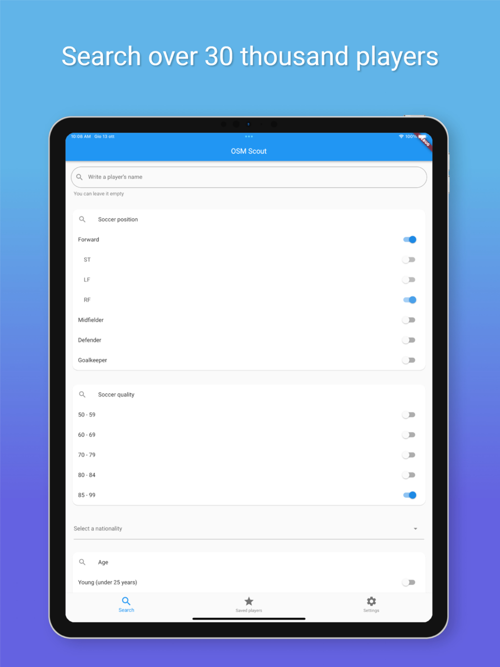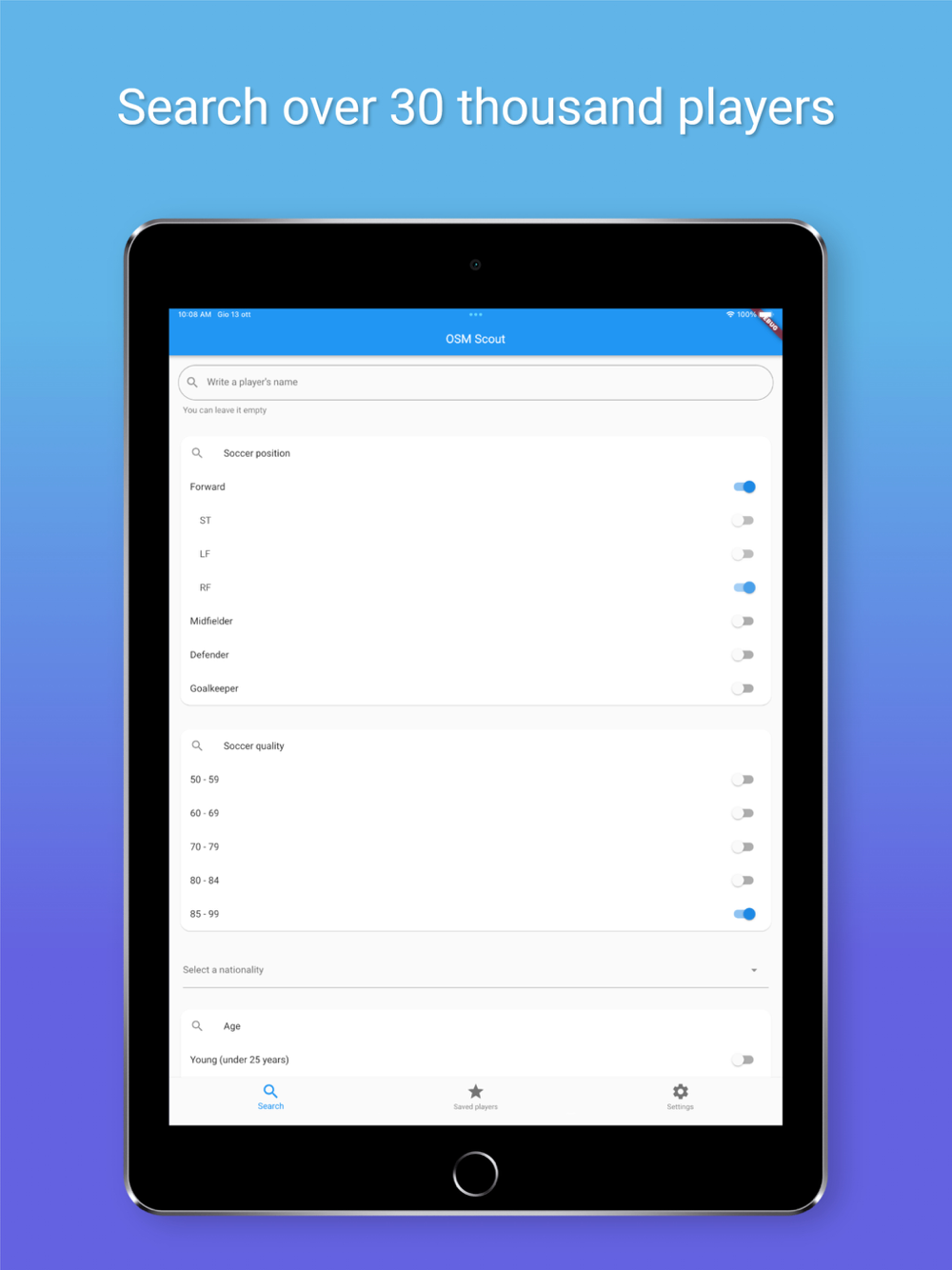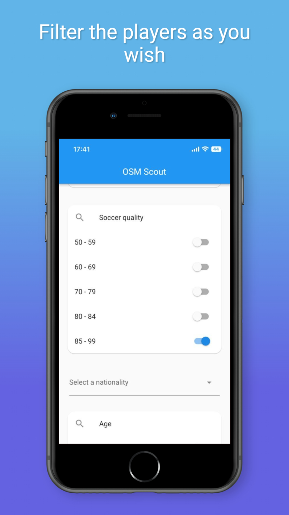Your search ends here, thanks to OSM Scout - the paramount tool for discovering, evaluating, and acquiring top-tier players. Our app simplifies the scouting process, empowering you to handpick players based on an array of essential criteria, including name, position, quality, age, nationality, and league. Embrace the future of soccer team building with OSM Scout!