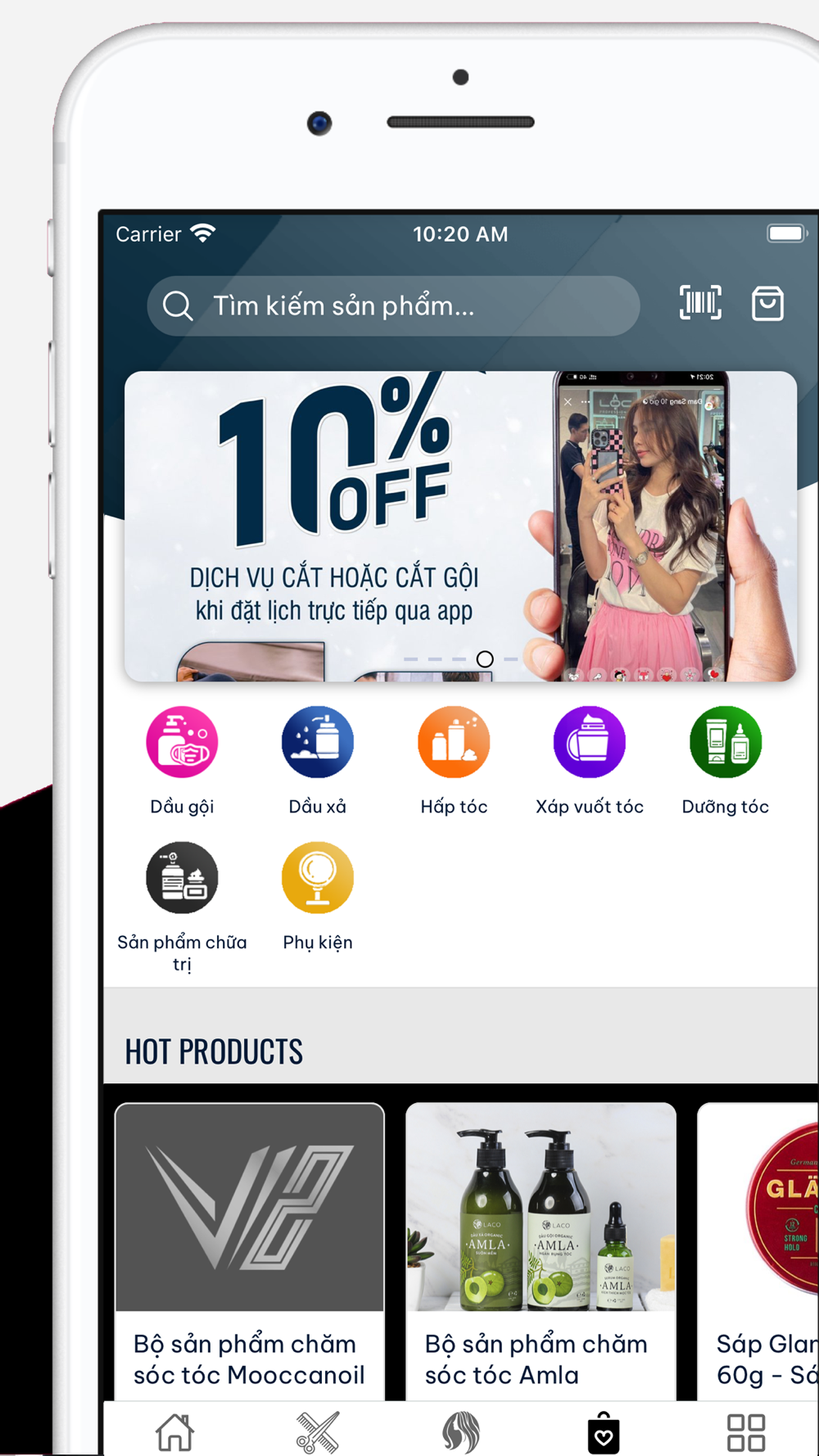 + Tham khảo, lựa chọn và đặt hàng các sản phẩm chăm sóc tối ưu ngay trên ứng dụng V2 Hair Salon