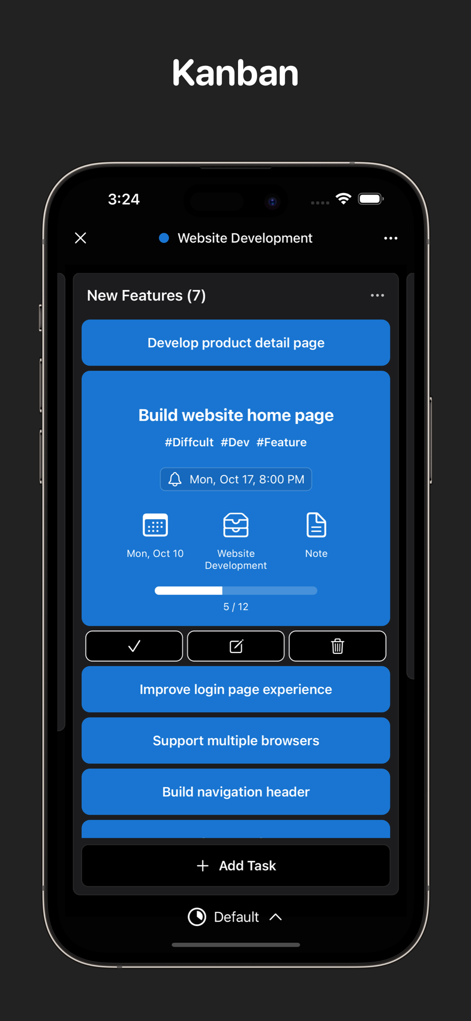 Kanban Style: Embrace the fluidity of Kanban within your projects, moving tasks through stages with a simple swipe, visualizing progress and streamlining workflows.