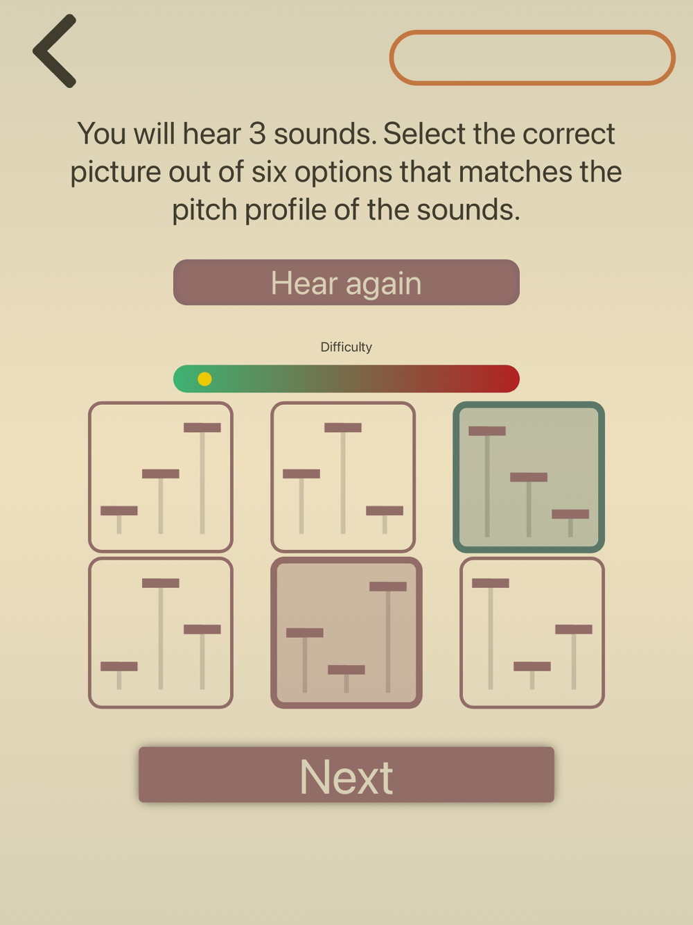 In Ears to Hear, you will be presented with three sounds and you must arrange them in order of increasing frequency. This simple exercise will help you develop your ear for music and sharpen your musical abilities.