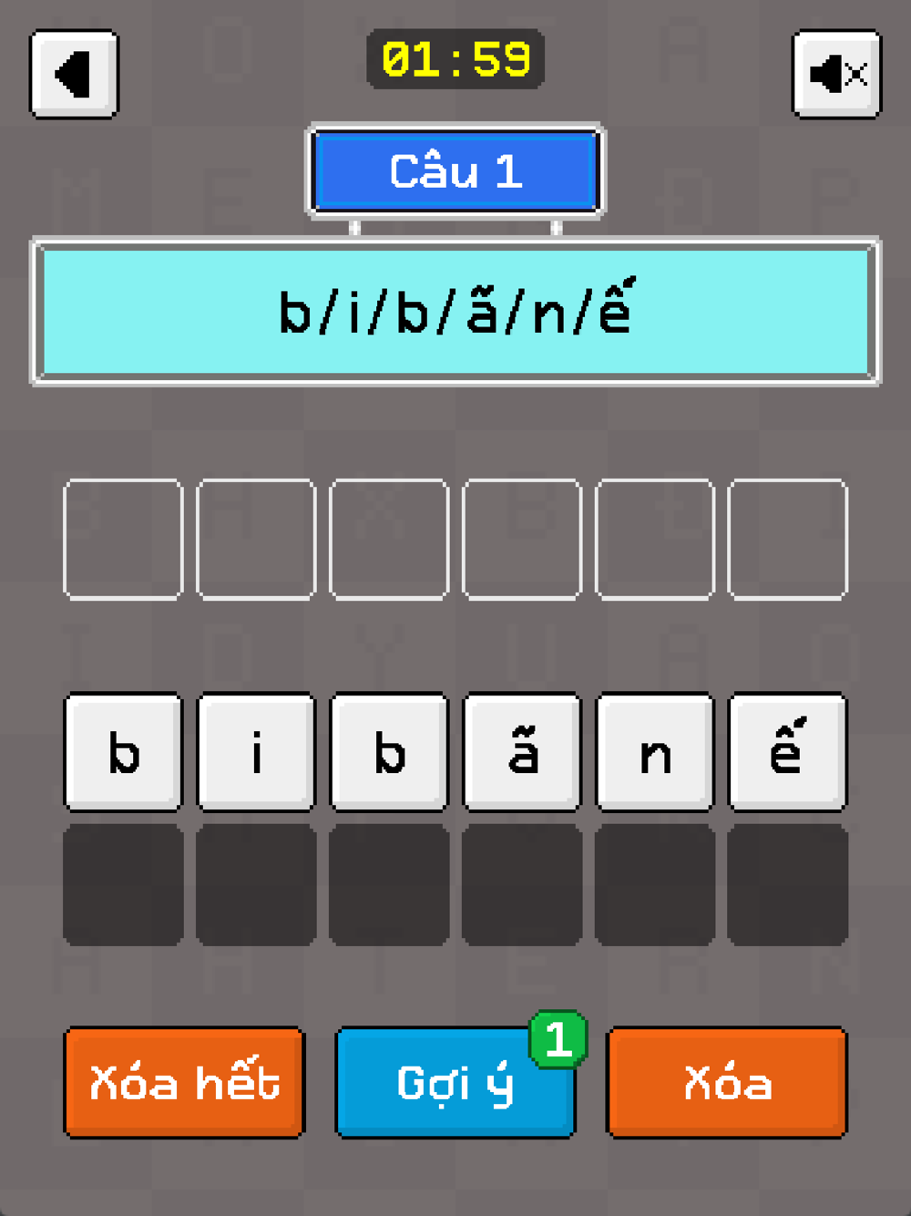 Trong trò chơi này người chơi sẽ được đưa ra một chuỗi các chữ cái và dấu để sắp xếp lại thành một từ hoặc cụm từ có nghĩa. Người chơi phải trả lời được câu hỏi trước khi thời gian kết thúc. Khi trò chơi bắt đầu, người chơi sẽ được 1 gợi ý của chương trình, hoàn thành câu hỏi nhanh sẽ được thưởng thêm 1 gợi ý.