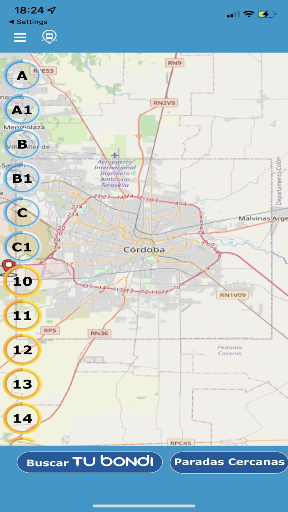 Aplicación online para consultar horarios para viajar a cualquier destino de la ciudad de Córdoba, saber la demora de los coches que están cumpliendo servicio, y conocer su ubicación sobre mapa satelital.