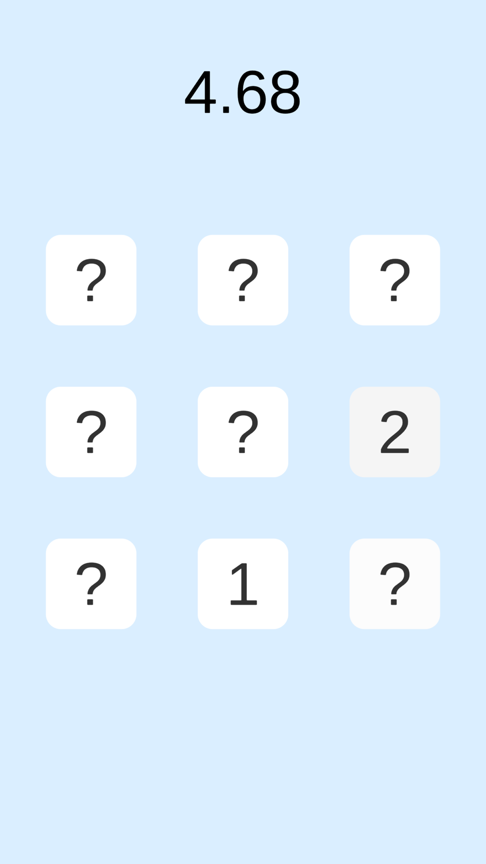 暗記が終わったら数字が見えなくなるので、記憶をもとに順番通りに押せたらクリア!