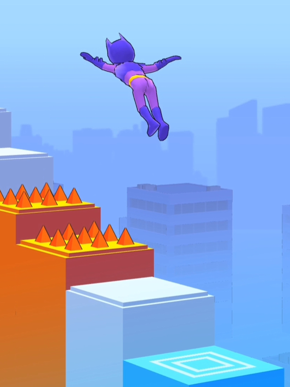 The ragdoll superhero moves up the stairs and fights the bosses he meets along the way. He has to avoid holes, spikes, and other obstacles to win and see his girlfriend.