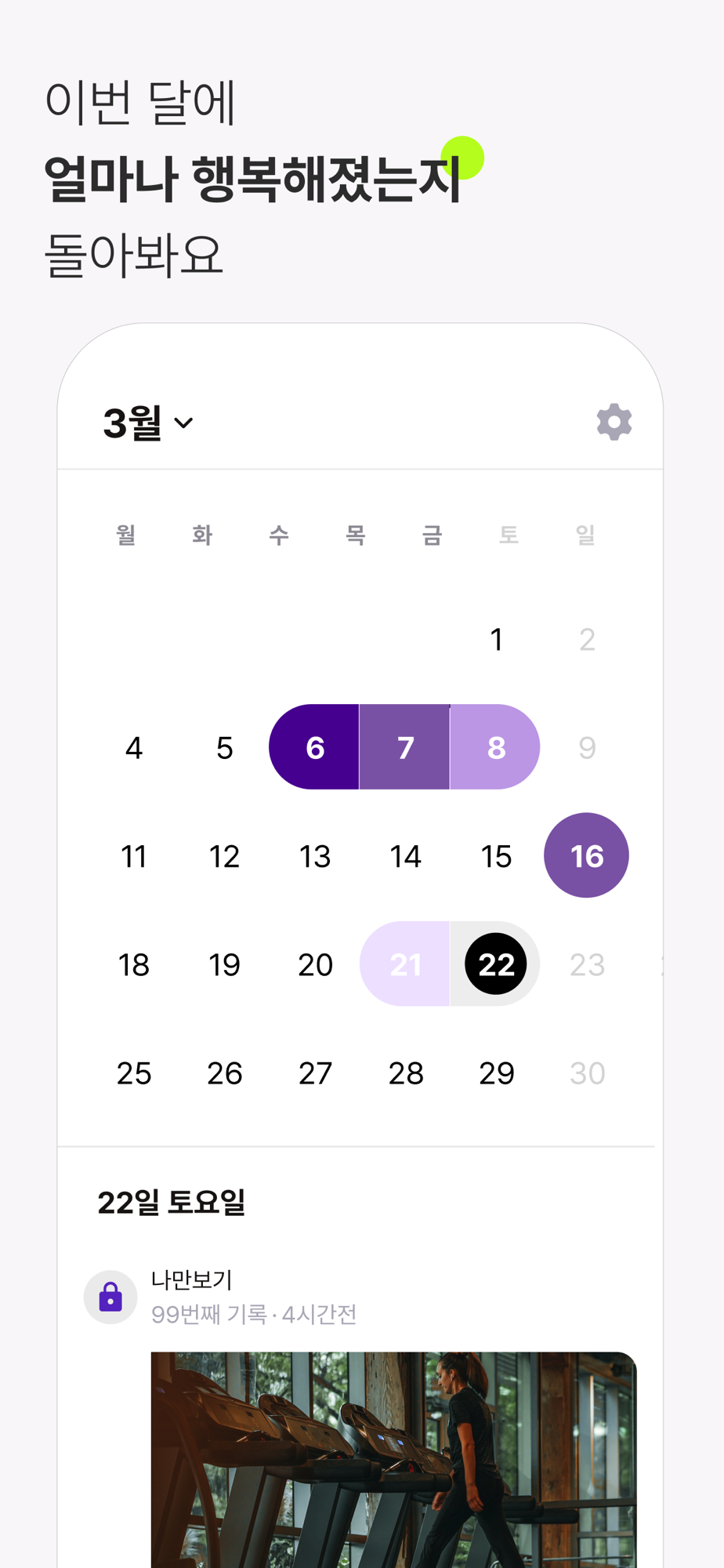 무엇이든 좋습니다. 헬스, 필라테스, 걷기, 홈트, 등산… 종목은 상관 없습니다. 인스타 처럼 몸매를 자랑하는 공간이 아닙니다. 매일 운동하며 오늘도 나 자신을 한번 더 사랑하는 기록을 남깁니다. 나와 공감하는 엄마들이 응원해주고 격려해주고 때로는 조언해 줍니다. 매일 서로 응원하고 응원받다 보면 어느새 더 성장하는 내 모습을 발견하게 됩니다. 건강하고 주도적인 갓생 살기, 히로인스에서 이뤄보세요.
