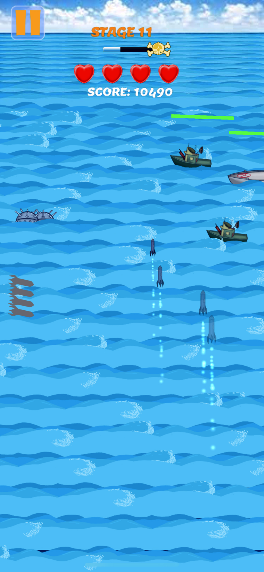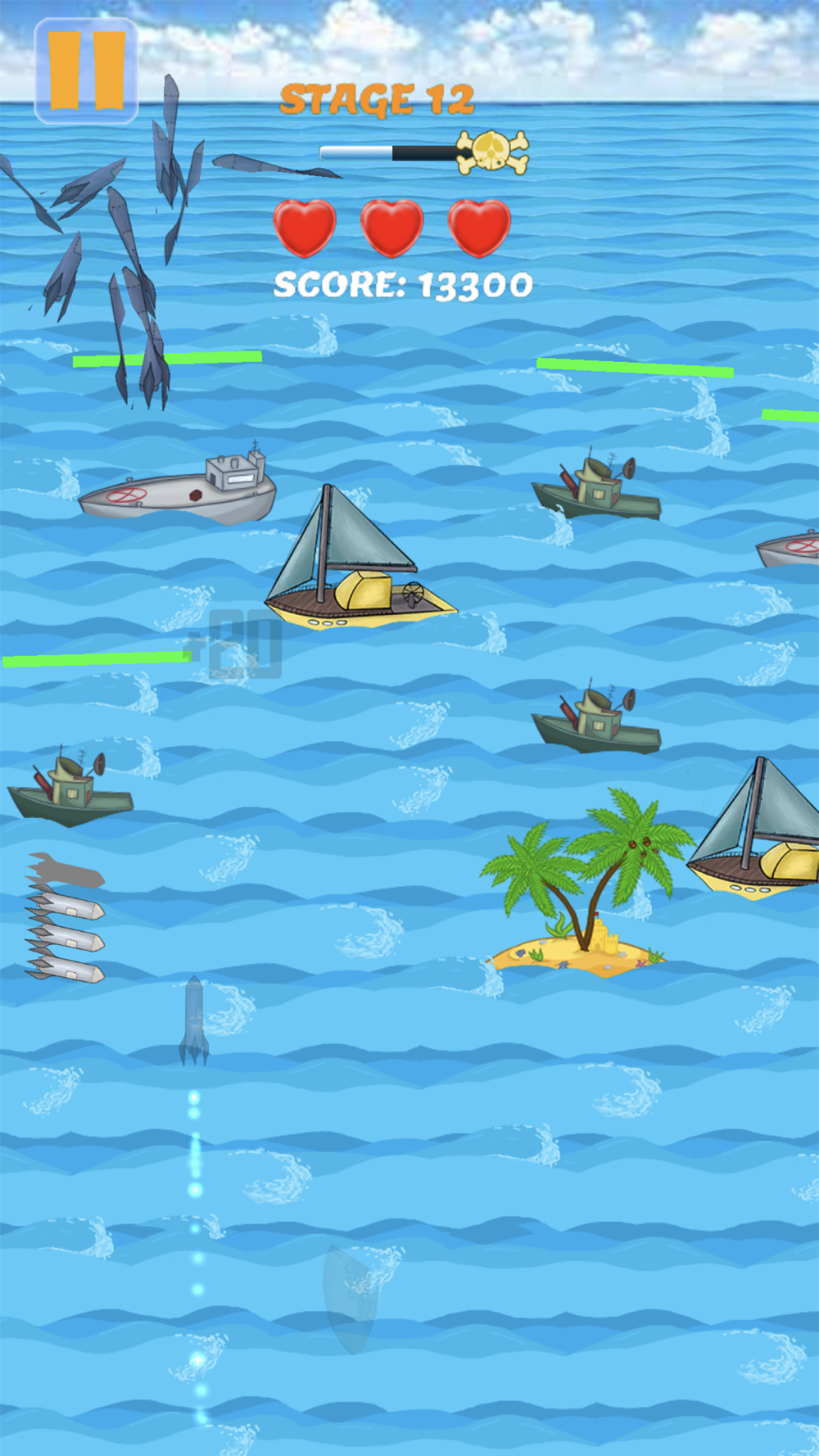 Tap the screen to launch a torpedo, launch multiple torpedoes. Don't let the ships swim behind the screen.